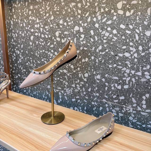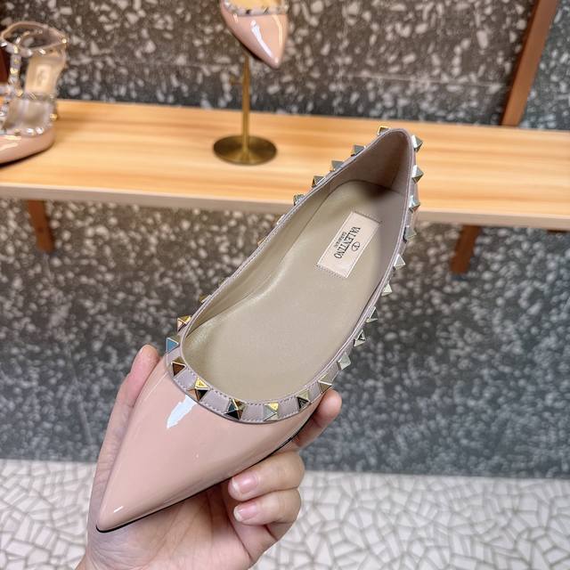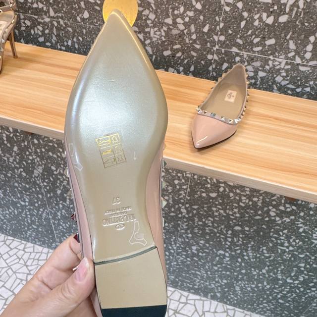 Retail-grade Va*Le*Tino Hua*Tian*Classic Studded Patent Leather Pointed Toe Sandals, Top-tier replica, original from authorized retailers. Welcome to compare. We have genuine products available; absolutely the highest quality, far superior to market goods. 1. Original mold, exclusive color matching, original CNC roller stitching for perfect lines and needle holes. 2. Lining uses the same mixed sheepskin as the genuine product; a single, seamless lining, rejecting the patchwork linings found in the market. 3. Newly colored Italian genuine leather sole with logo lettering, perfectly shaped. 4. Sizes 35-39, custom sizes 34, 40, 41, 42 available. Original packaging included.