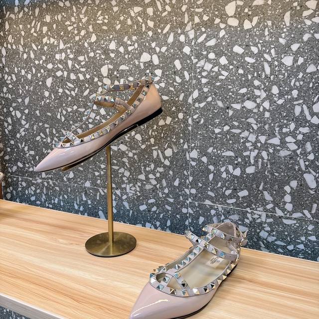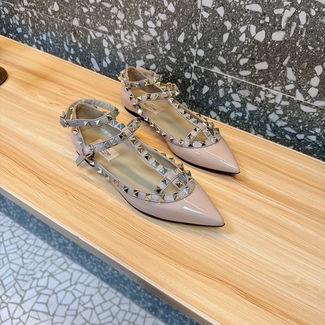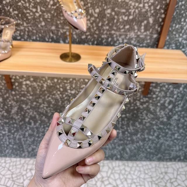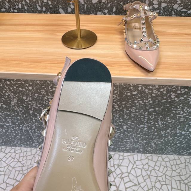 Retail-grade Va*Le*Tino Hua*Tian*Classic Studded Patent Leather Pointed Toe Sandals, Top-tier replica, original from authorized retailers. Welcome to compare. We have genuine products available; absolutely the highest quality, far superior to market goods. 1. Original mold, exclusive color matching, original CNC roller stitching for perfect lines and needle holes. 2. Lining uses the same mixed sheepskin as the genuine product; a single, seamless lining, rejecting the patchwork linings found in the market. 3. Newly colored Italian genuine leather sole with logo lettering, perfectly shaped. 4. Sizes 35-39, custom sizes 34, 40, 41, 42 available. Original packaging included.