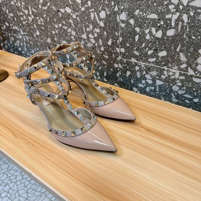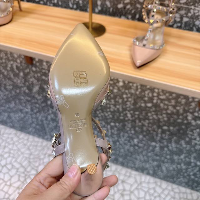 Retail-grade Va*Le*Tino Hua*Tian*Classic Studded Patent Leather Pointed Toe Sandals, Top-tier replica, original from authorized retailers. Welcome to compare. Authentic products available, absolutely the highest quality, far superior to market goods. 1. Original mold, exclusive color matching, original CNC roller stitching, perfect lines and needle holes. 2. Lining uses the same mixed sheepskin as the authentic product, a single piece without splicing, rejecting the spliced linings found in the market. 3. New color scheme, imported Italian genuine leather sole with logo lettering, perfectly shaped. 4. Sizes 35-39, custom sizes 34, 40, 41, 42 available. Original packaging included.