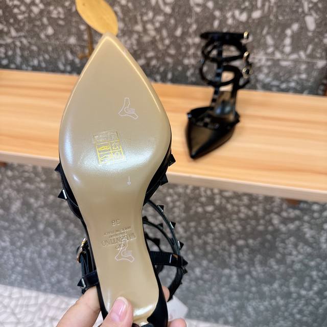 Retail-grade Va*Le*Tino Hua*Tian*Classic Studded Patent Leather Pointed Toe Sandals, Top-tier replica, original from authorized retailers. Welcome to compare. Authentic products available, absolutely the highest quality, far superior to market goods. 1. Original mold, exclusive color matching, original CNC roller stitching, perfect lines and needle holes. 2. Lining uses the same mixed sheepskin as the authentic product, a single piece without splicing, rejecting the spliced linings found in the market. 3. New color scheme, imported Italian genuine leather sole with logo lettering, perfectly shaped. 4. Sizes 35-39, custom sizes 34, 40, 41, 42 available. Original packaging included.