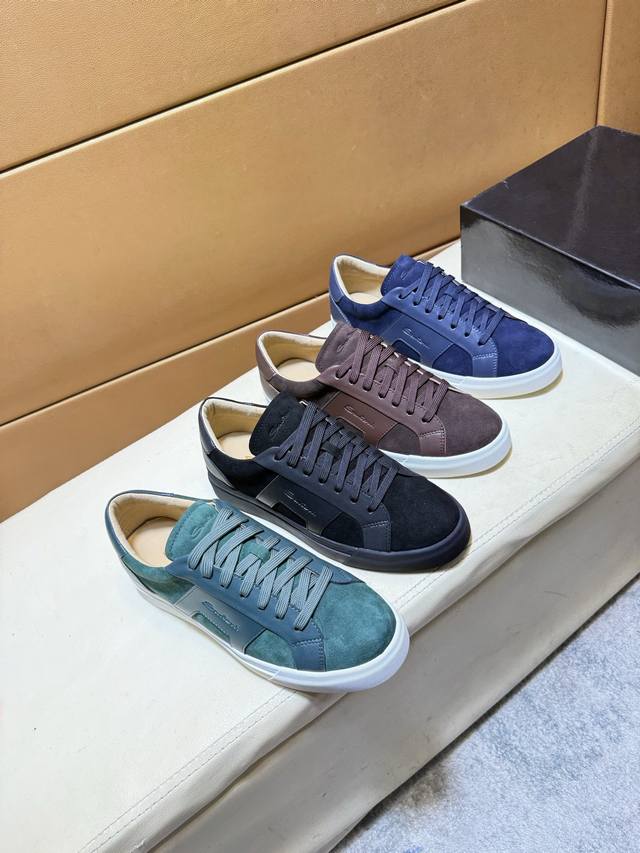 Santoni Top-Tier Men's Shoes 2025 HK Release, Simultaneous with Boutique Sales. Sole: Original factory-supplied sole, exclusive active sole for super comfort, original factory order, high-quality multi-color patchwork design, exquisite and delicate workmanship, unique, silk upper, cowhide lining
