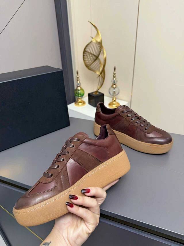 Self-labeled - Unlabeled German Military Training Casual Sneakers, a brand of genius designers, a light luxury brand. This German military training shoe continues the classic T-shaped genuine leather patchwork design. After multiple meticulous improvements by the design team, it's designed to let you experience the most authentic military feel. Material: The soft and delicate characteristics of top-grain cowhide are combined with the suede texture of elk hide, giving it both superior softness and comfort while maintaining a balance of comfort and quality. It's easy to wear and can be paired with any outfit. The sole uses a retro Oxford outsole, with a softness far exceeding that of any other rubber-soled shoe! Outer Material: Top-grain waxed horsehide. Lining: Soft sheepskin lining. Outsole: Non-slip and wear-resistant rubber sole. Sole Thickness: 3cm. Sizes: Women's sizes 35-40, factory price.