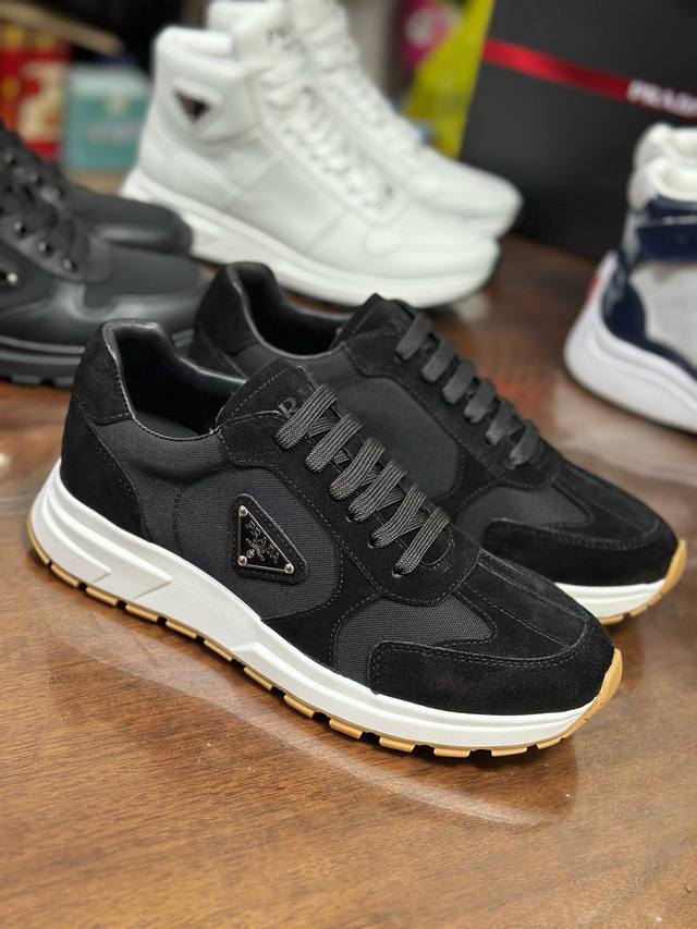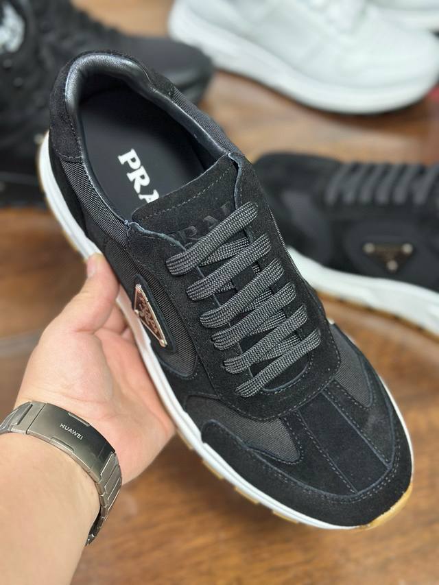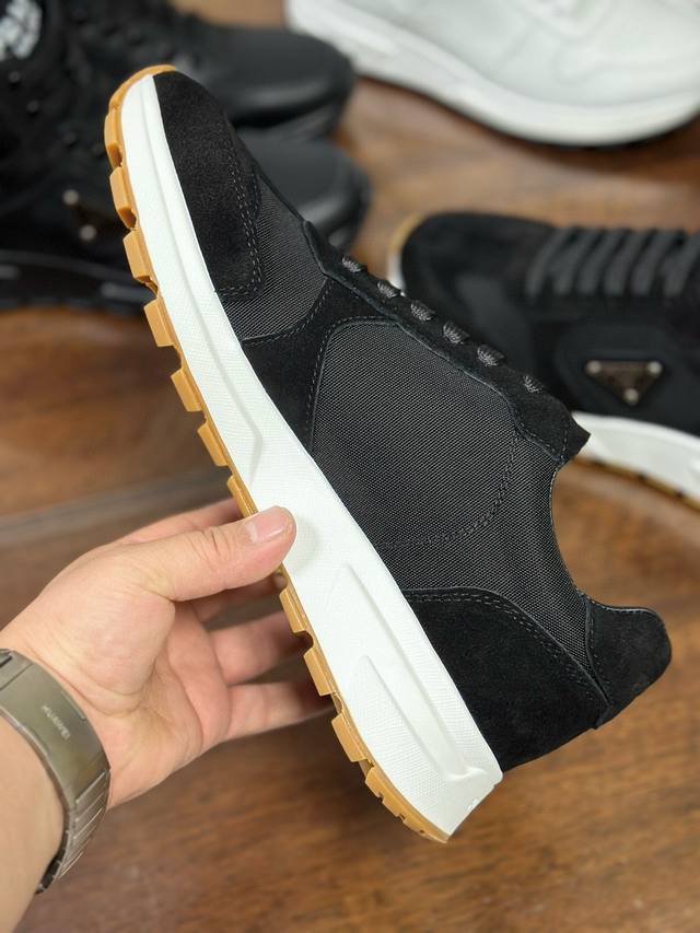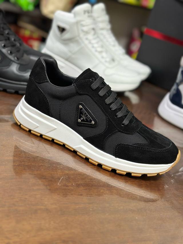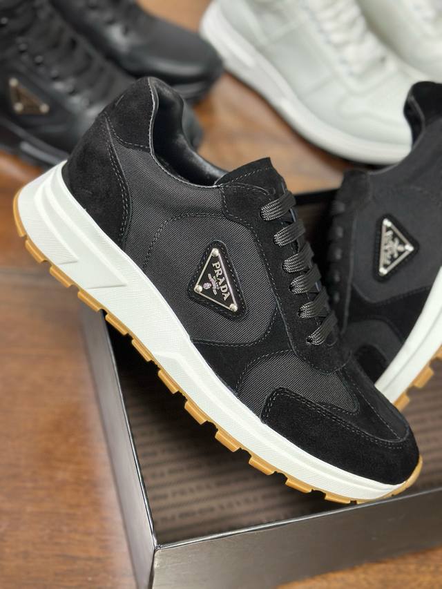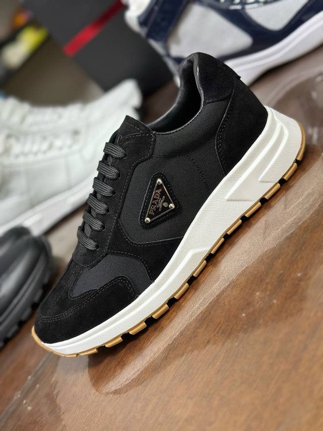 Sizes 38-46 45 46 Custom Made Ddd Prax sneakers blend style and comfort, with a distinctive athletic design defined by exquisite materials and details. The combination of two materials embodies versatility and modernity, and features a lightweight two-tone sole. Ddd ? Lacing Ddd ? Enameled metal triangle logo Ddd ? Tongue adorned with a Prada Milano silkscreen logo Ddd ? Widened sole with textured platform Ddd ? Sole height: 2.5 cm Ddd ? Removable insole Ddd