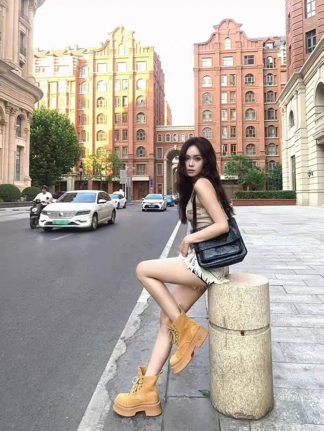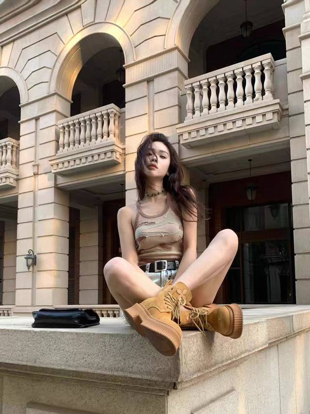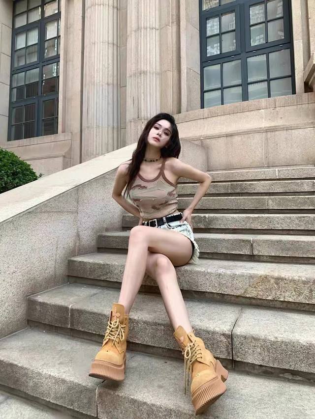 Smfk New style Martin boots by internet celebrity Wu Xuanyi, 4-inch short boots, wasteland style, desert thick-soled yellow boots, hidden inner height increase of 5cm, heel 6cm, fabric: A-grade high mercerized cow suede lining with sheepskin, size 34-40