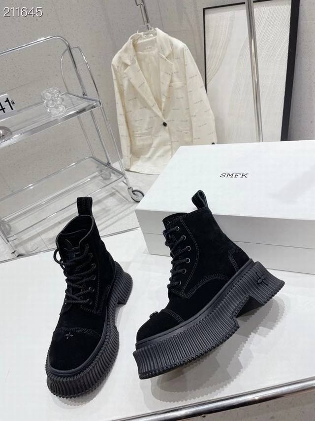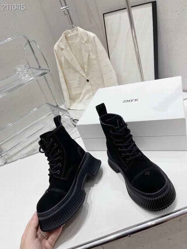 Smfk New style Martin boots by internet celebrity Wu Xuanyi, 4-inch short boots with wasteland style, desert thick-soled yellow boots, rubber sole with hidden inner height increase of 5cm, heel 6cm, fabric: A-grade high mercerized cow suede, inner foot pad sheepskin, size 34-40