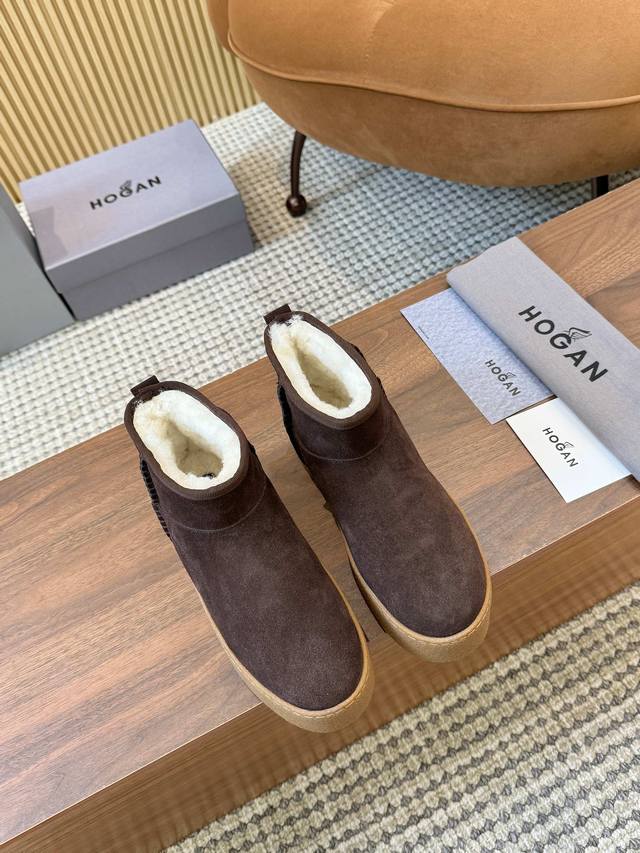 Solid price, no discounts! Hot selling Hogan new style! Women's fashionable round-toe genuine leather and wool ankle boots, sporty and casual, the thick sole instantly adds 55mm in height. Hand-stitched suede calfskin, modern minimalist aesthetic, back pull tab, high-elastic insole for comfortable and warm feet. A classic and timeless genuine leather ankle boot, a must-have for every autumn and winter. You deserve it. Women's sizes 35-40. DDD