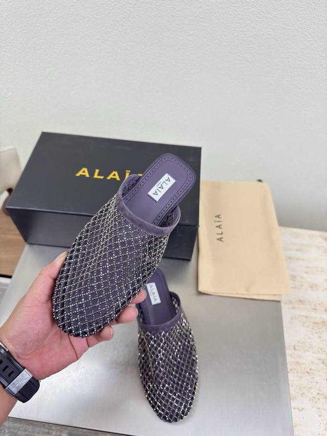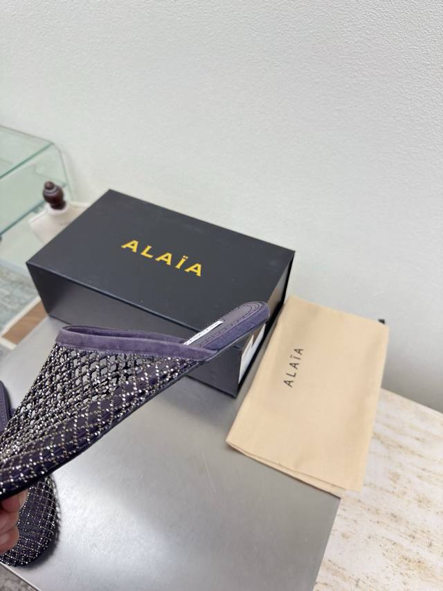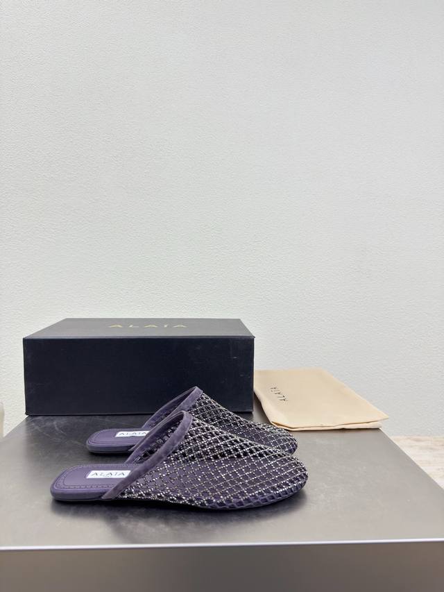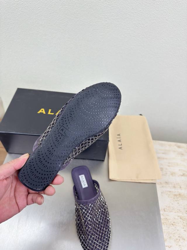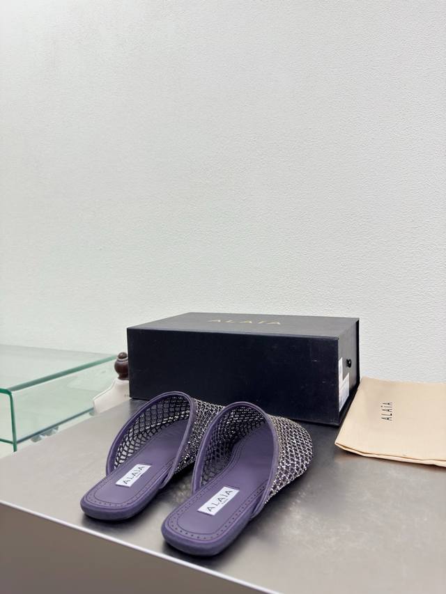 Sparkling Slippers, Mesh and Rhinestone Series, Exquisite Diamond Inlay DDD Alaia Slippers from Paris Ddd Purple, Love at First Sight Ddd Pure Handmade High-End Classic DDD Alaia also has another sexy side DDD Easily paired with different styles and looks, whether it's jeans, suit pants, or a pleated skirt, it can elevate your outfit to fashion, elegance, and excellence Ddd The material uses the original material with ultimate sexiness Ddd Inner lining sheepskin Ddd Outsole consistent with the original Ddd Sizes 34 35 36 37 38 39 40 41 42 34 40 41 42 Customized Ddd Comes with original packaging DDD Ddd