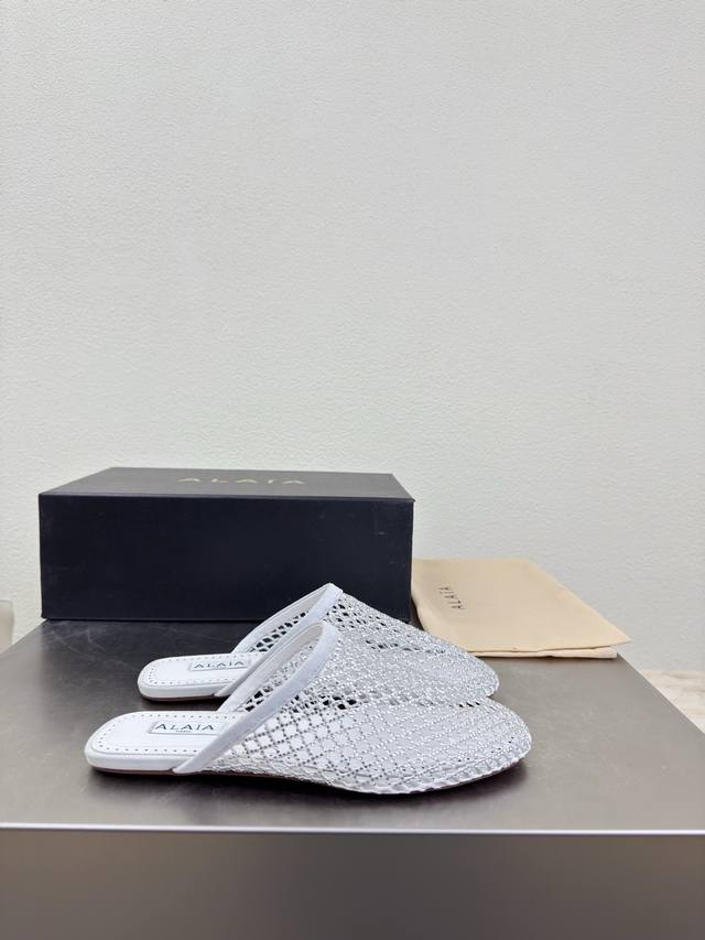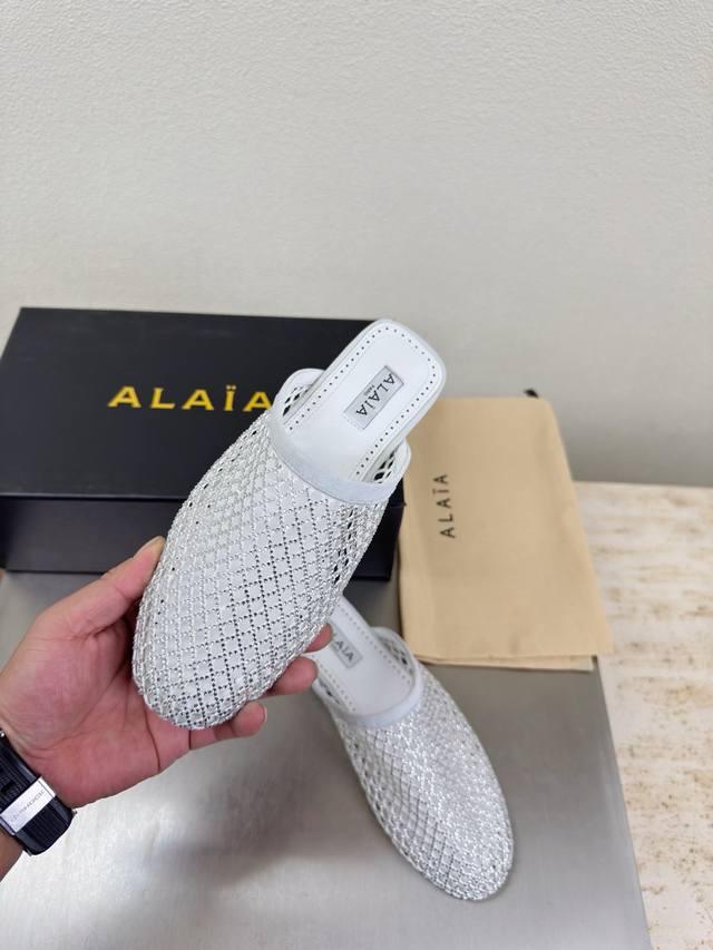 Sparkling Slippers, Mesh and Rhinestone Series, Exquisite Diamond Inlay DDD Alaia Slippers from Paris Ddd White, Love at First Sight Ddd Pure Handmade, High-End Classic DDD Alaia also has another sexy side DDD Easily paired with different styles and looks, whether it's jeans, suit pants, or a pleated skirt, it can elevate your outfit to fashion, elegance, and excellence Ddd The material uses the original material with ultimate sexiness Ddd Inner lining sheepskin Ddd Outsole consistent with the original Ddd Sizes 34 35 36 37 38 39 40 41 42 34 40 41 42 Customized Ddd Comes with original packaging DDD Dd d