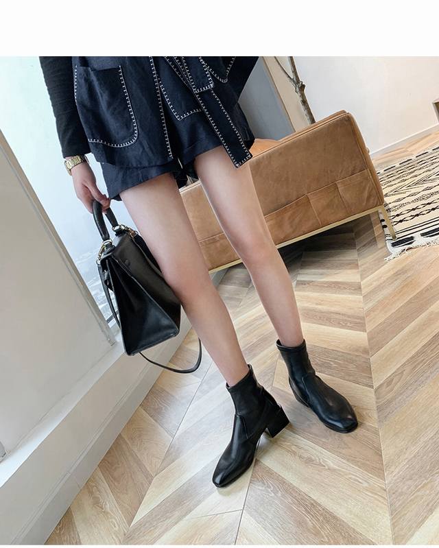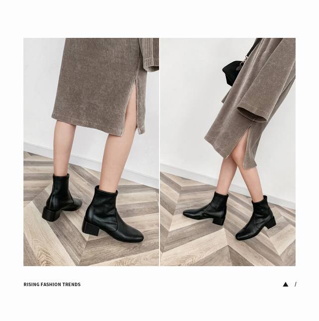 Stuart Weitzman, Yang Mi, Yuan Shanshan, Song Jia, and many other domestic and international celebrities' same style, 1:1 original, meticulously crafted, simple style, unique chunky heel design, elastic shaft, comfortable and not tiring on the feet. Material: Cowhide, cashmere; Lining: Pigskin; Rubber outsole, 5cm heel height; Size: 34-42.
