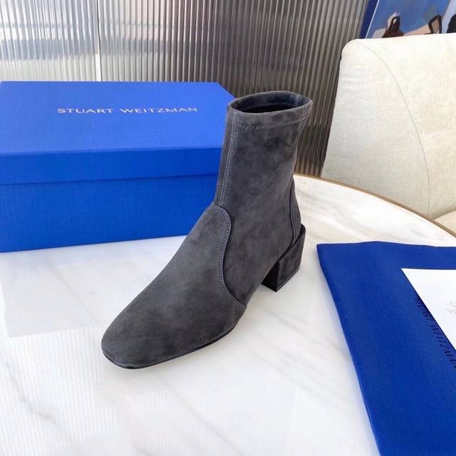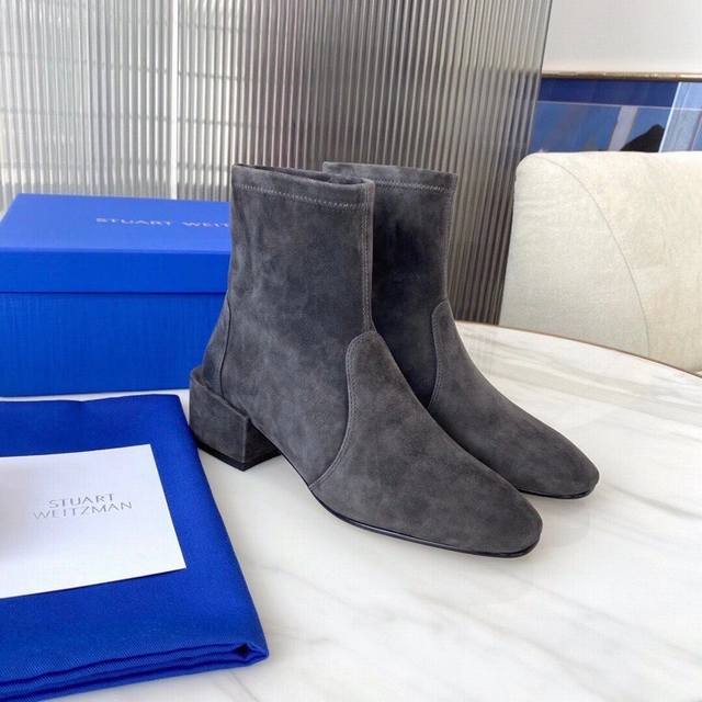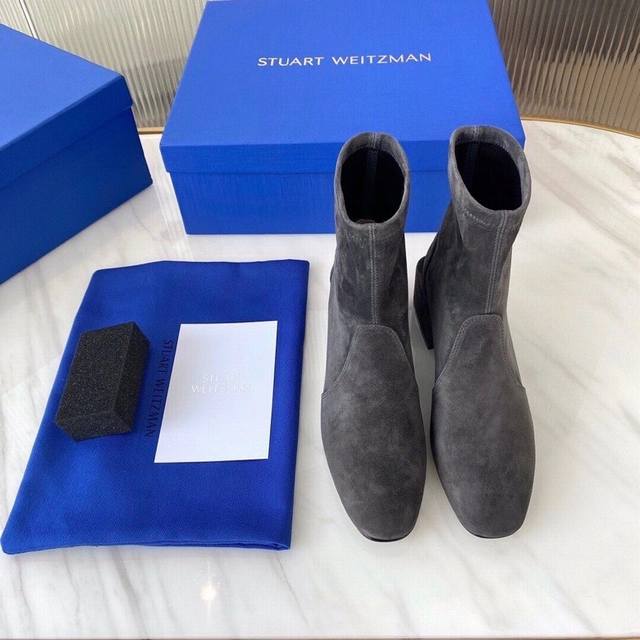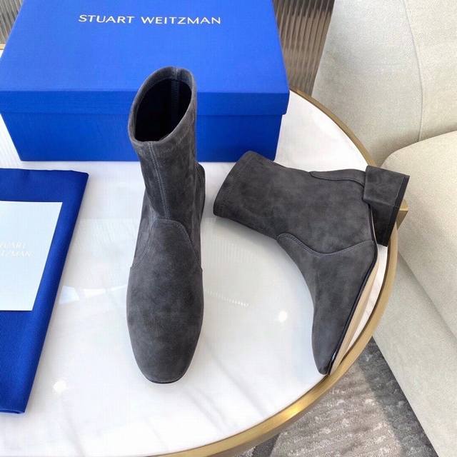 Stuart Weitzman, Yang Mi, Yuan Shanshan, Song Jia, and many other domestic and international celebrities' same style, 1:1 original, meticulously crafted, simple style, unique chunky heel design, elastic shaft, comfortable and not tiring to wear. Material: Cowhide, cashmere; Lining: Sheepskin; Rubber outsole, 5cm heel height; Size: 34-42.
