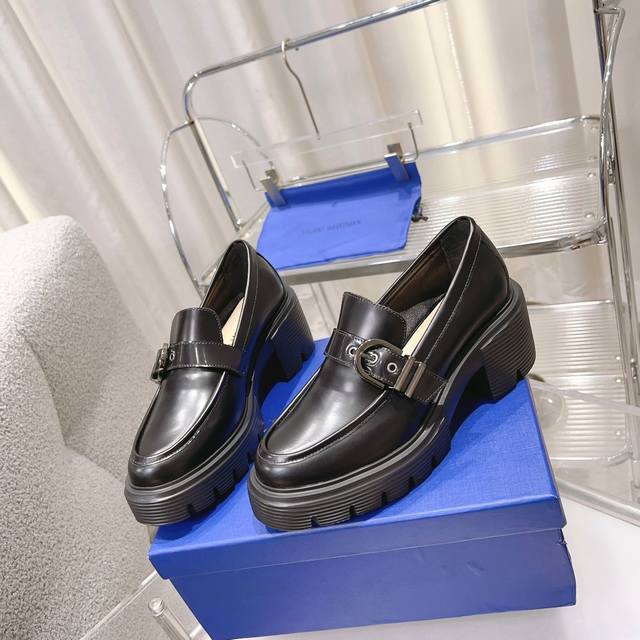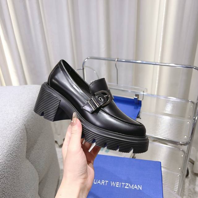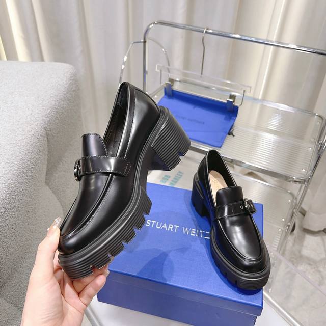 Sw 2025 Early Spring New Platform Loafers. Classic luxurious patent leather craftsmanship injects a fashionable and avant-garde free-spirited personality into everyday flat shoes, making the shoes both practical and trendy. The simple and smooth lines, paired with a slightly narrowed almond-shaped round toe, particularly flatter the foot shape, making the feet appear delicate and slender without squeezing the toes. The lightweight rubber sole provides overall practicality and elasticity, requiring no break-in period and adapting well, making walking comfortable and comfortable. Height-enhancing, slimming, and versatile. Materials: Imported open-edge beads, EVA foam mold, ultra-light sole, 6cm heel. Sizes 34-40.