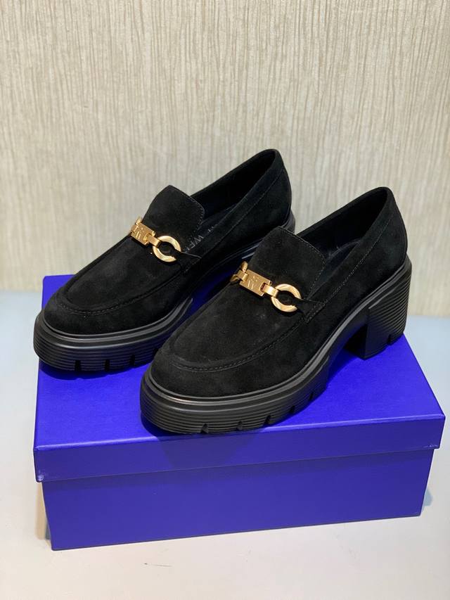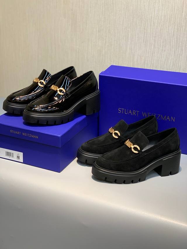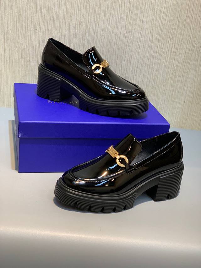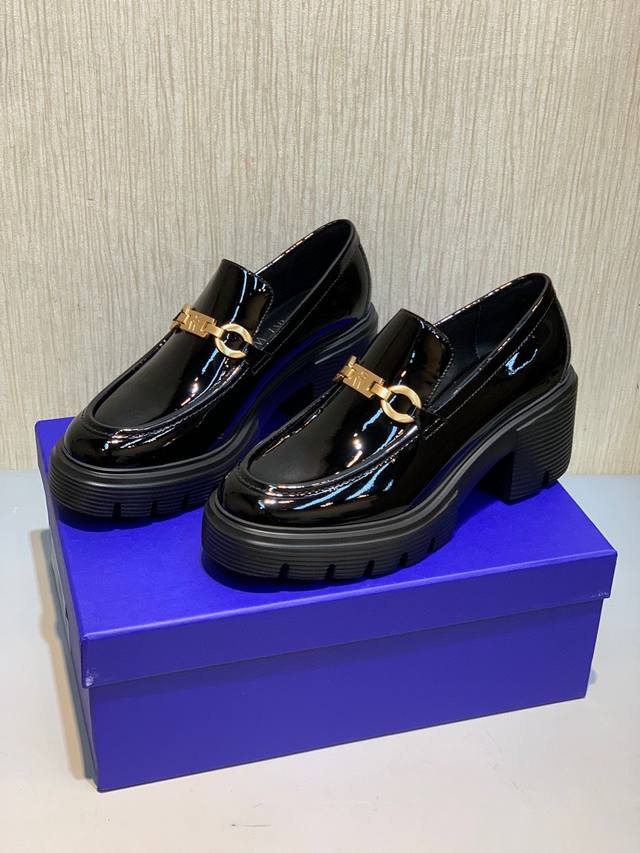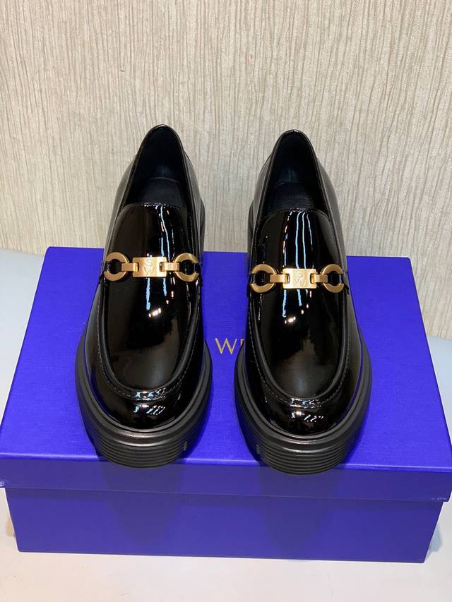 Sw 2025 Early Spring New Platform Loafers. Classic luxurious patent leather craftsmanship injects a fashionable and avant-garde free-spirited personality into everyday flat shoes, making the shoes both practical and trendy. The simple and smooth lines, paired with a slightly narrowed almond round toe, particularly flatter the foot shape, making the feet appear delicate and slender, without squeezing the toes. The lightweight rubber sole provides overall practicality and elasticity, requiring no break-in period and adapting well. They are comfortable to walk in, adding height and slimming the figure, and are versatile. Materials: Mirror-finish soft patent leather, EVA foam molded outsole, ultra-lightweight, 6cm heel. Sizes 34-40.