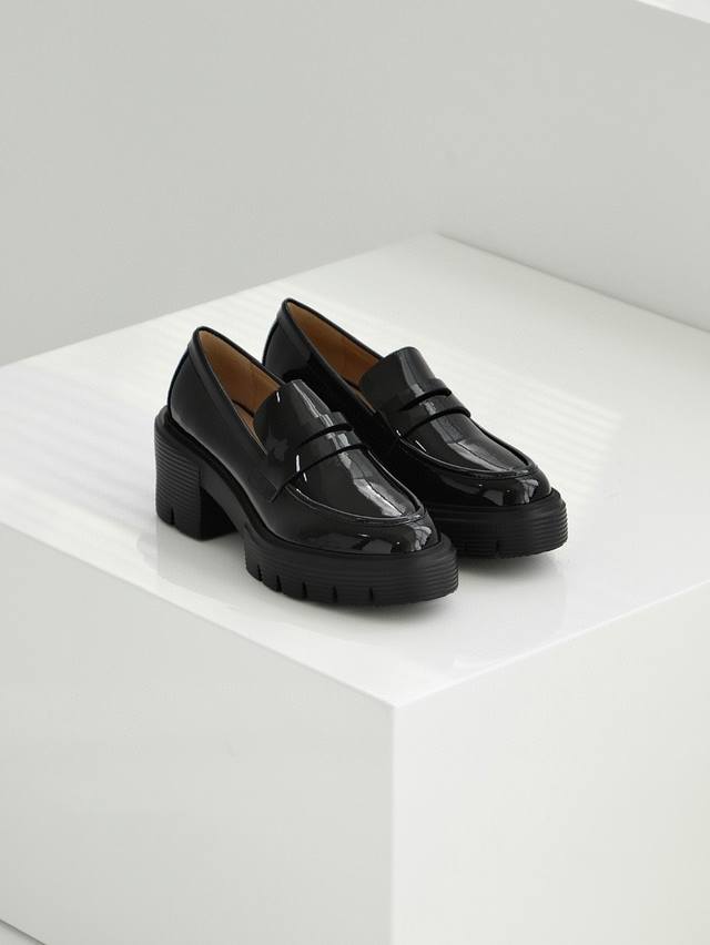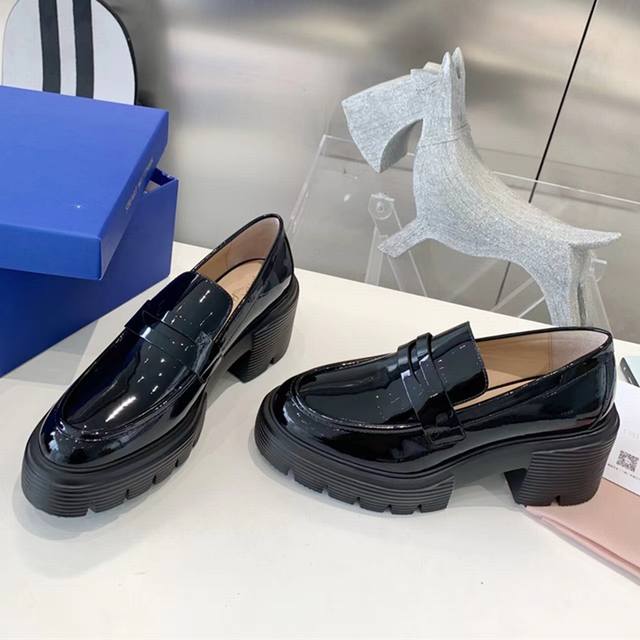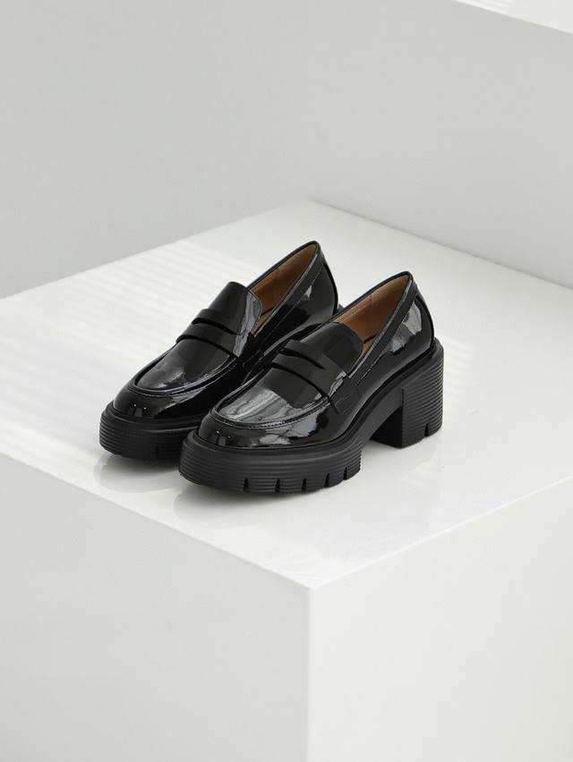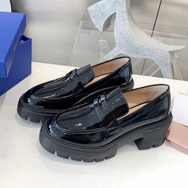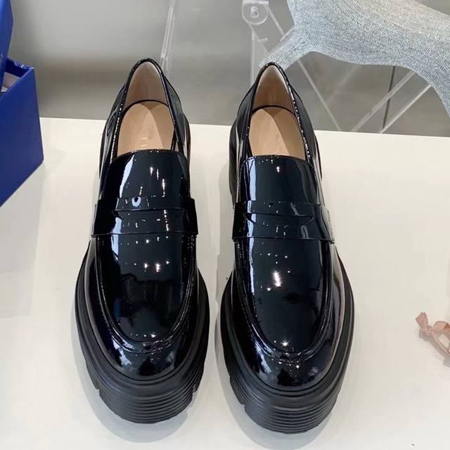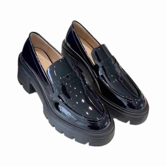 Sw 2025 Early Spring New Platform Loafers. Classic luxurious patent leather craftsmanship injects a fashionable and avant-garde unrestrained personality into everyday flat shoes , making the shoes both practical and trendy . The simple and smooth lines, paired with a slightly narrowed almond round toe, particularly flatter the foot shape, making the feet appear delicate and slender, without squeezing the toes. The lightweight rubber sole provides overall practicality and elasticity, requiring no break-in period and adapting well. They are comfortable to walk in, adding height and slimming the figure, and are versatile. Materials: Mirror-finish soft patent leather, EVA foam molded outsole, ultra-lightweight, 6cm heel. Sizes: 34-40.