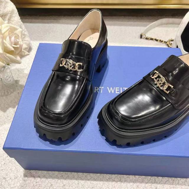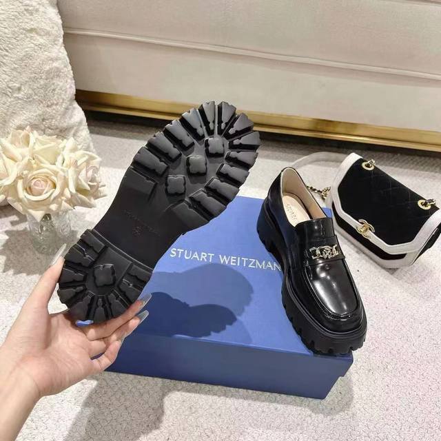 Sw Early Spring New Platform Loafers. Classic luxurious split-edge bead craftsmanship injects a fashionable and avant-garde unrestrained personality into everyday square-toe shoes, making the shoes both practical and trendy. The simple and smooth lines paired with a slightly narrowed almond square toe flatter the foot shape, making the feet appear delicate and slender without squeezing the toes. The lightweight rubber sole provides overall practicality and elasticity, requiring no break-in period and adapting well. They are comfortable to walk in, adding height and slimming the figure, and are versatile. Material: Split-edge beads; Eva foam molded outsole; ultra-lightweight; 5cm heel height. Sizes 34-40.