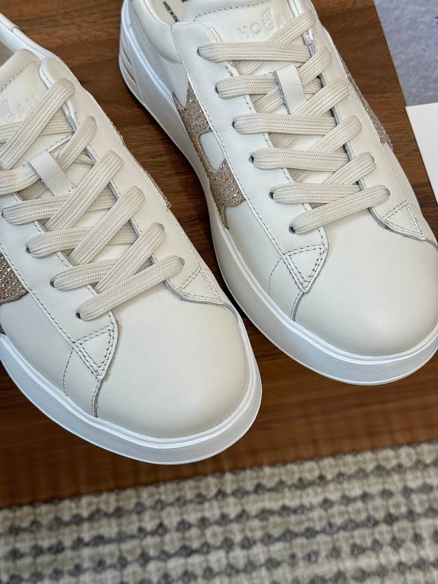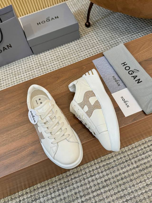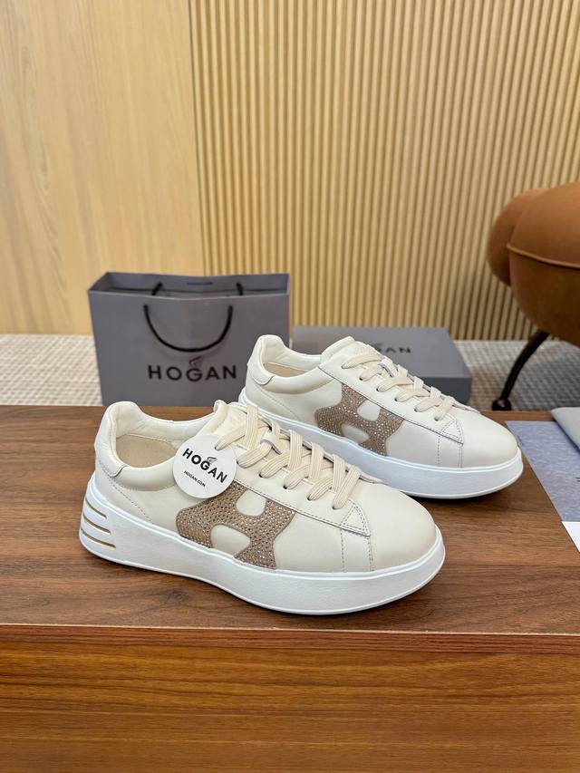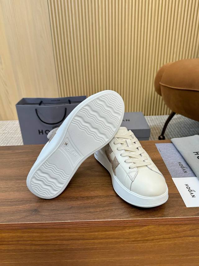 The Hogan classic sneakers blend elegance and modernity, featuring a rich color palette and the iconic Hogan logo on the side. These sneakers boast a slim silhouette, with subtle stitching adding texture. The thin strap design brings a classic sneaker style, making them a versatile piece in every wardrobe and a must-have for every woman. Sizes 35-40, 41 can be custom-made. Guaranteed to sell out quickly! (Image attached)