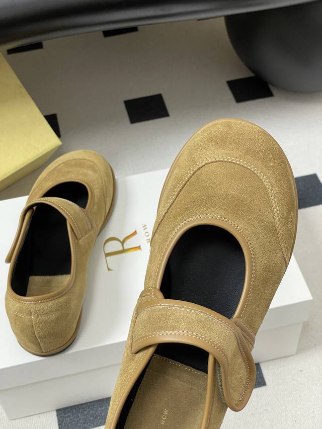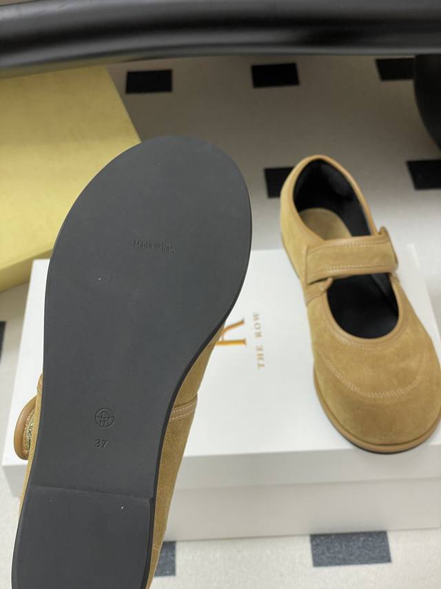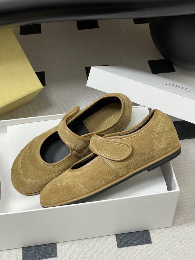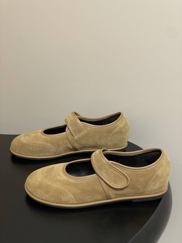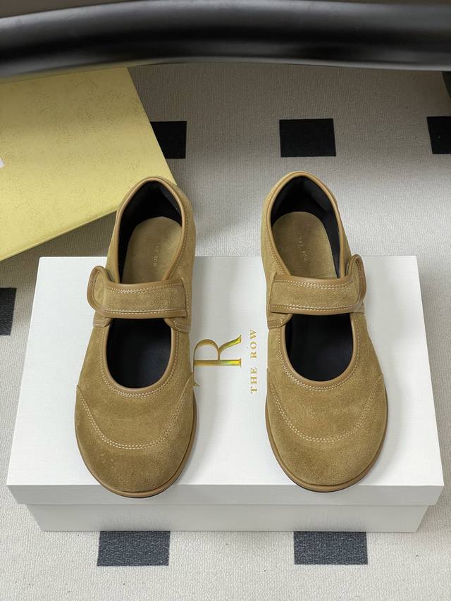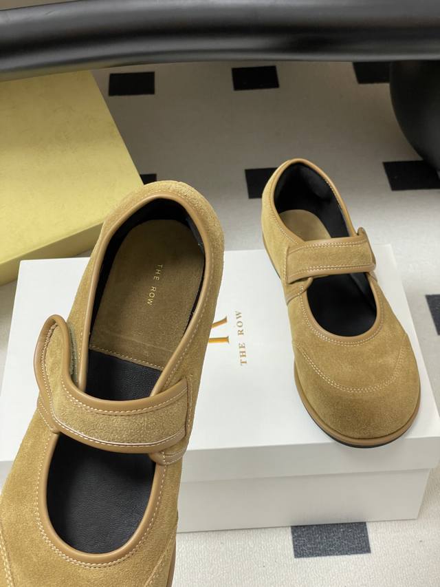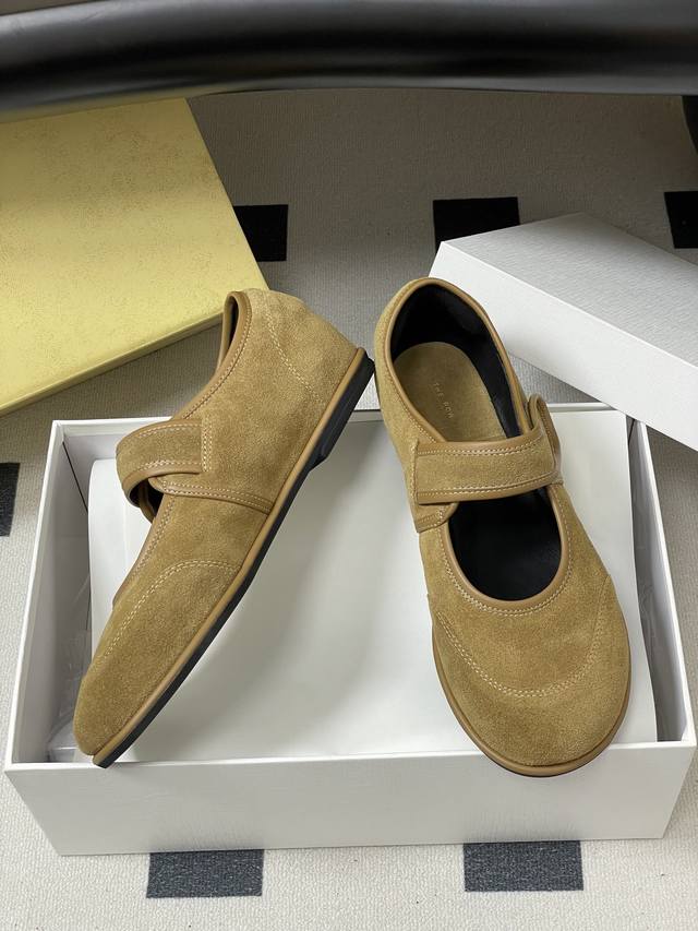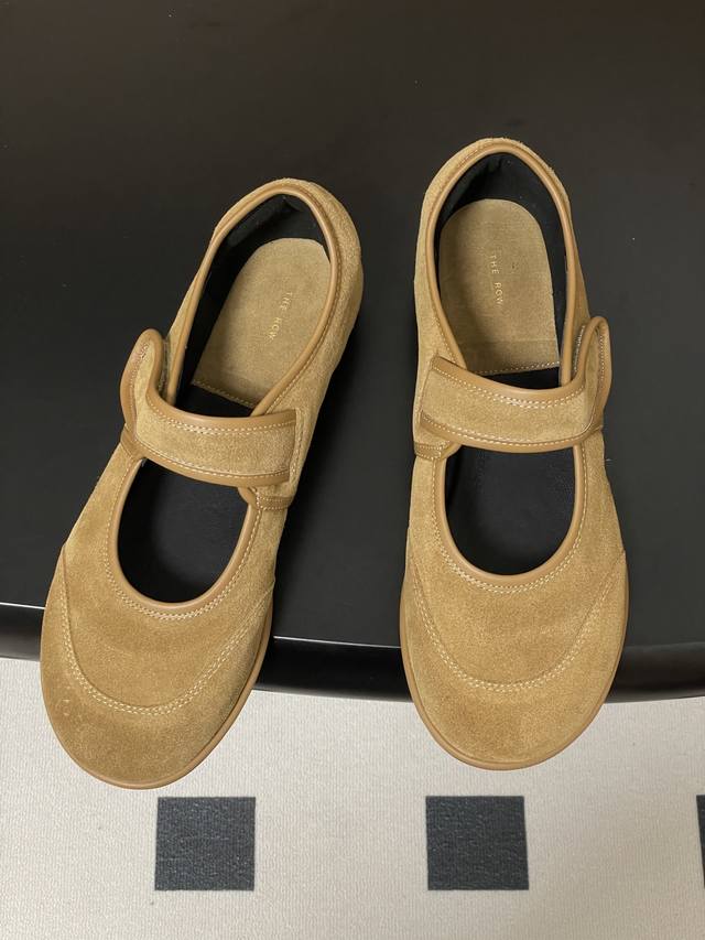The Row 2025 Autumn/Winter New Minimalist Style One-Strap Velcro Round Toe Flat Shoes Mary Jane Shoes Grandma Shoes