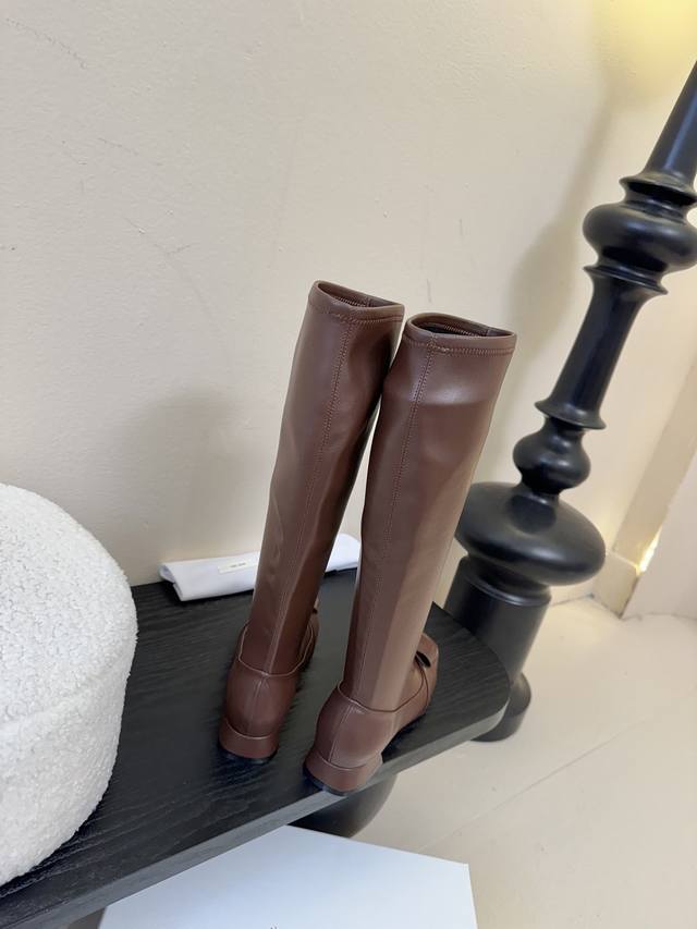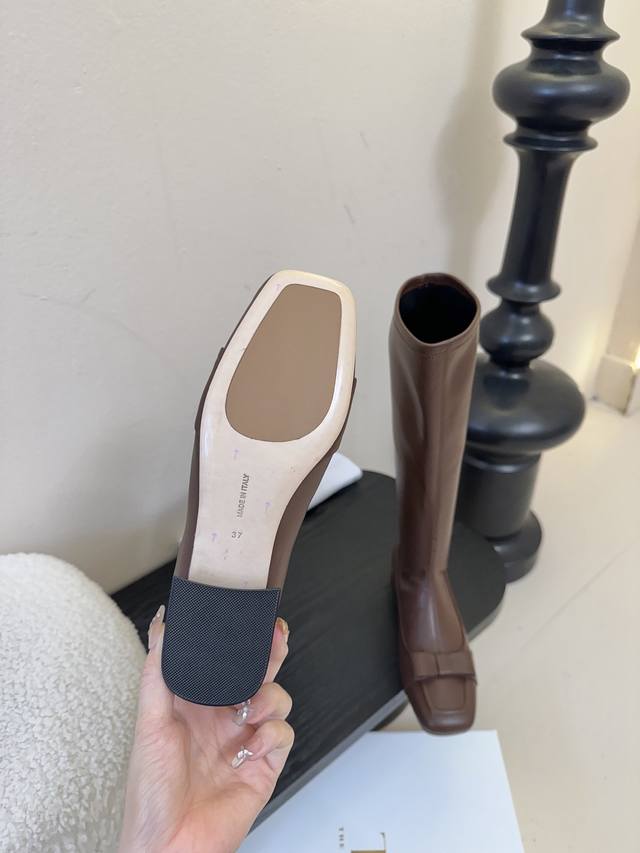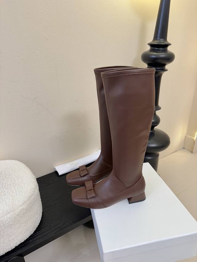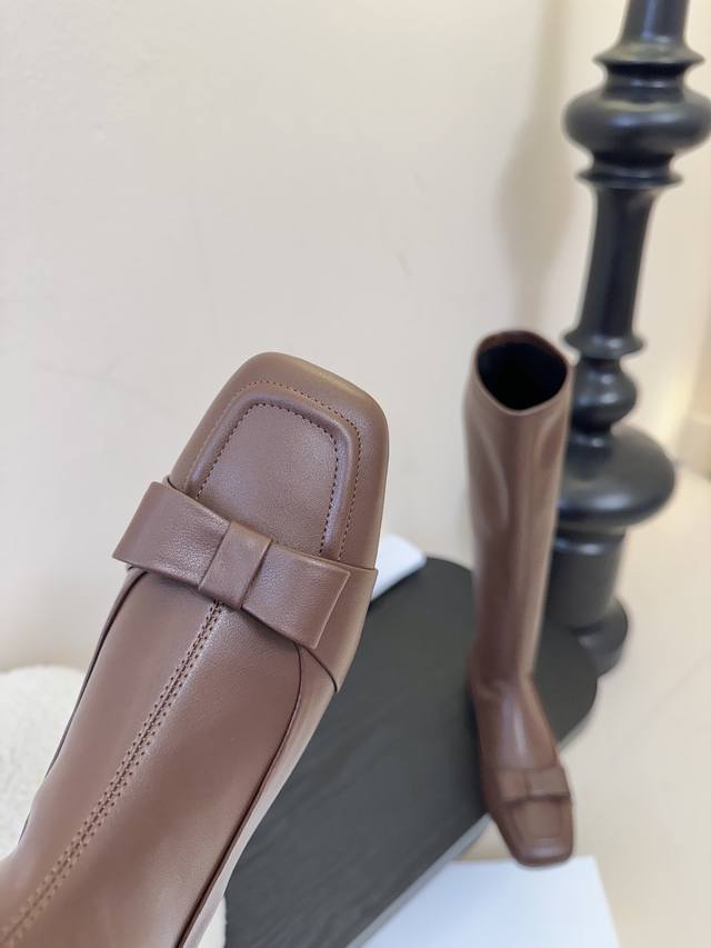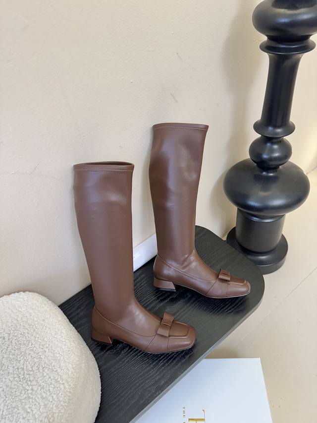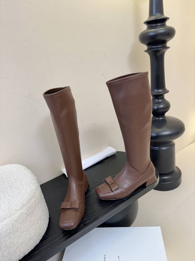 The Row 25Ss Autumn/Winter New Tr Bow Square Toe Chunky Heel Stretch Long Boots