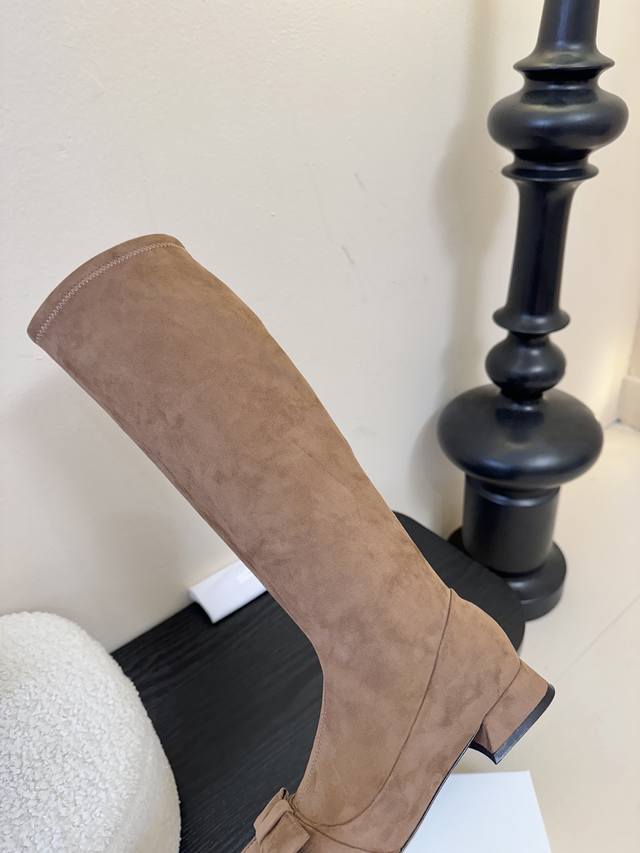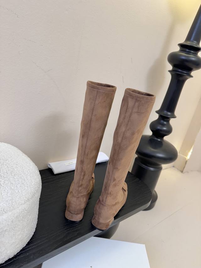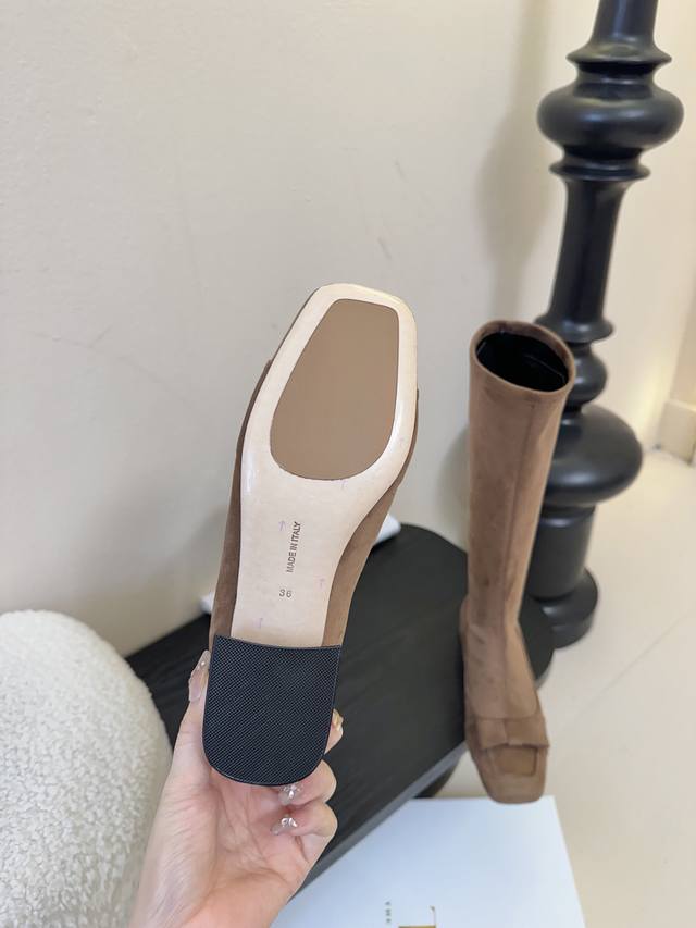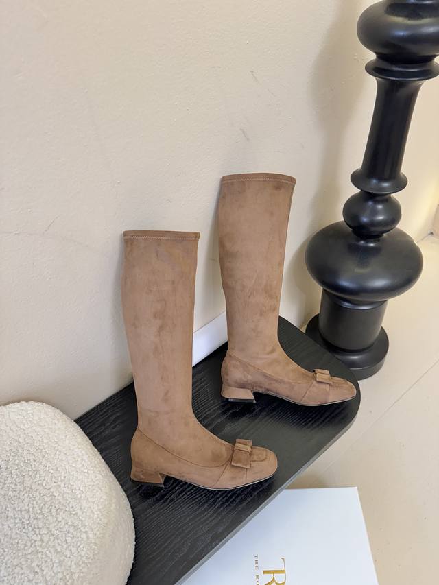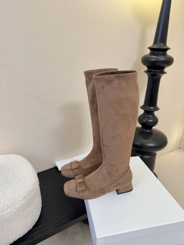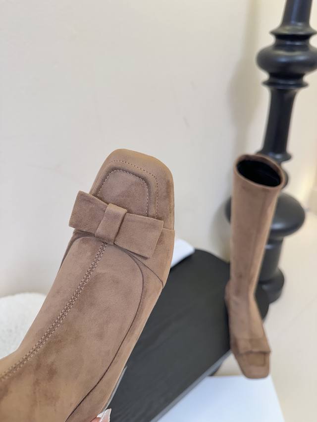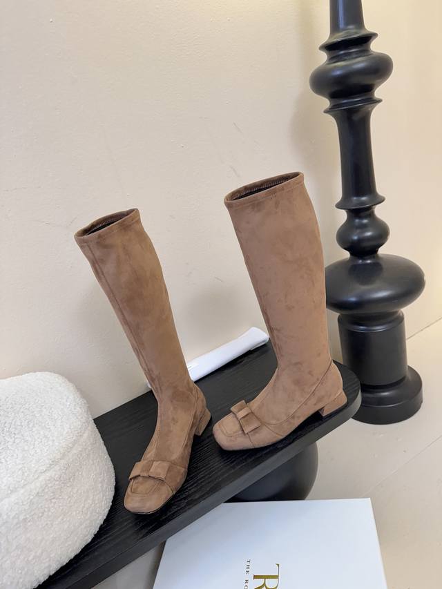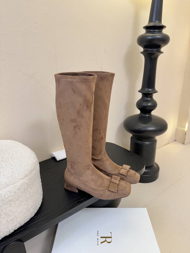 The Row 25Ss Autumn/Winter New Tr Bow Square Toe Chunky Heel Stretch Long Boots