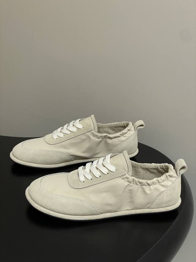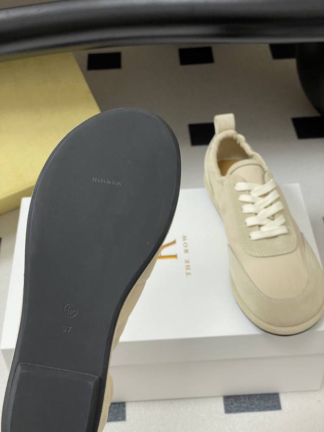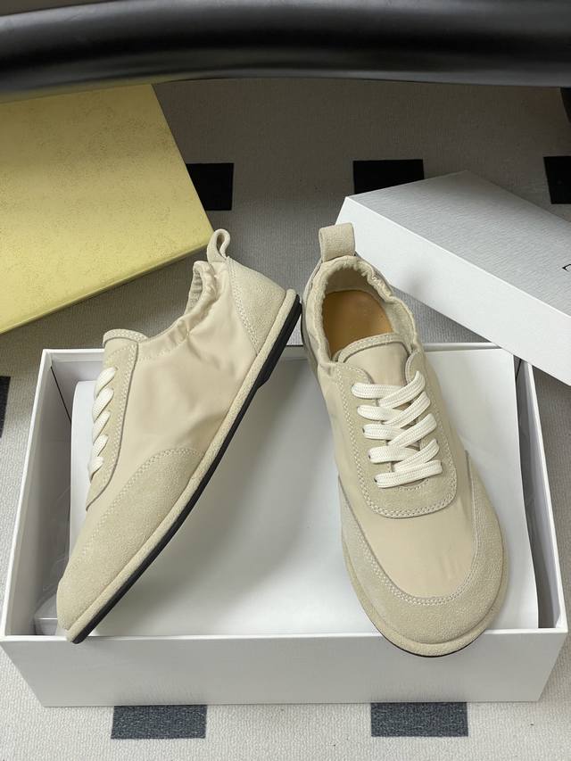 A new item that's been trending on Xiaohongshu! Love at first sight with The Row sneakers! Even a simple pair of sneakers from Row still looks high-end. The green colorway adds a retro and stylish touch, making the design even more fashionable. The classic round toe last is timeless and incredibly versatile for everyday wear!