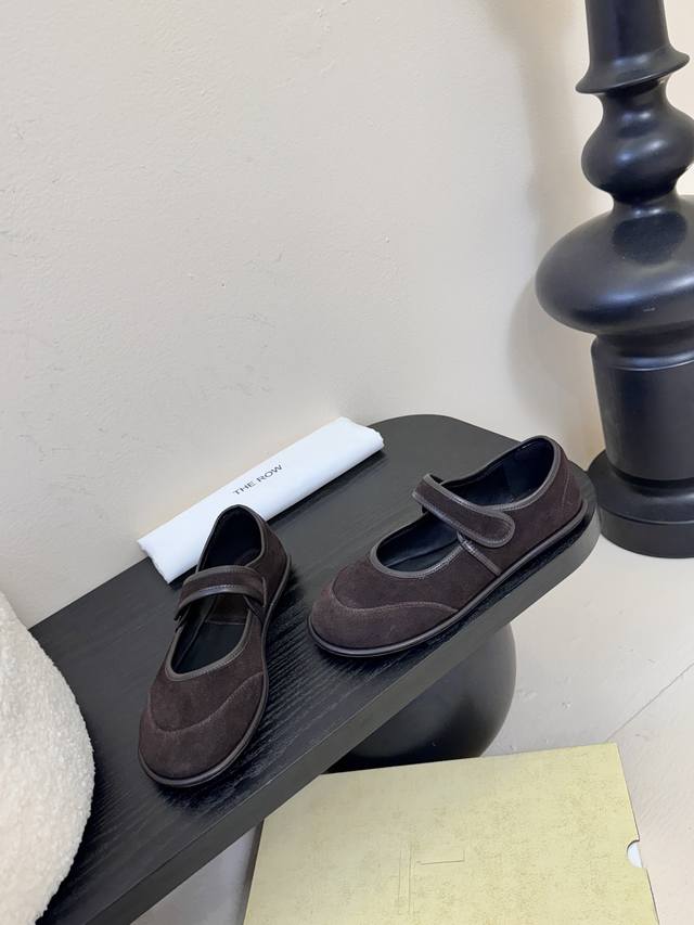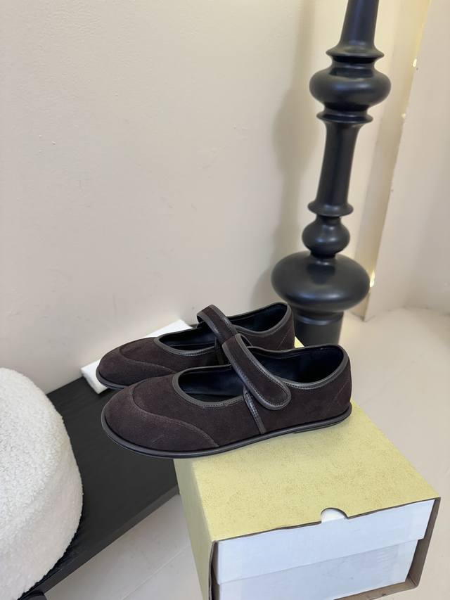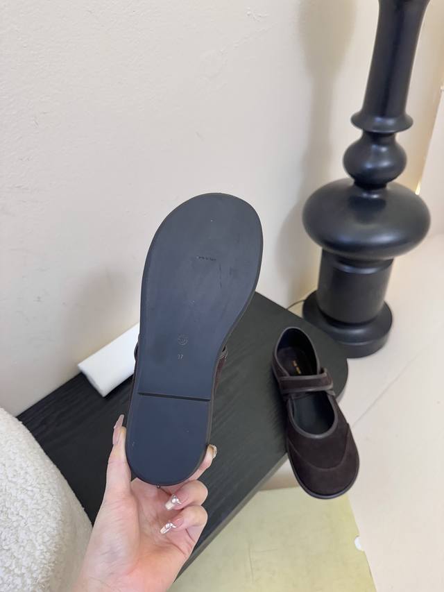 The Row's new Spring/Summer 25 flat-soled dancing shoes. It's rare to see such meticulously crafted, foot-friendly dancing shoes. They perfectly shape the foot while retaining their unique charm. They're easy to put on, incredibly comfortable, and perfect for everyday wear. They're incredibly versatile! Upper: Matte leather. Outsole: Original molded rubber outsole. Sizes: 35-40. 40 and 41 are custom-made and non-refundable.