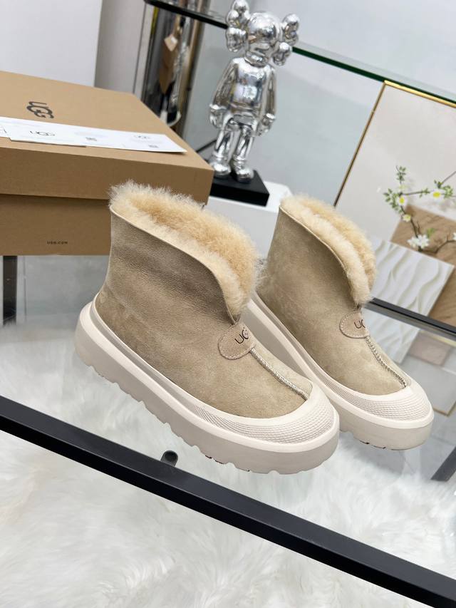 These snow boots, in two colors, feature a luxurious suede-like texture and perfectly capture the American retro vibe. The plush edges are incredibly soft and comforting, and the thick sole adds a subtle height boost. They pair wonderfully with coats and sweaters, feeling like walking on clouds