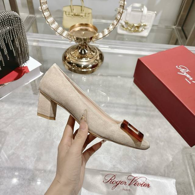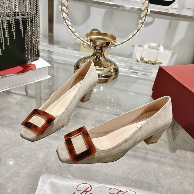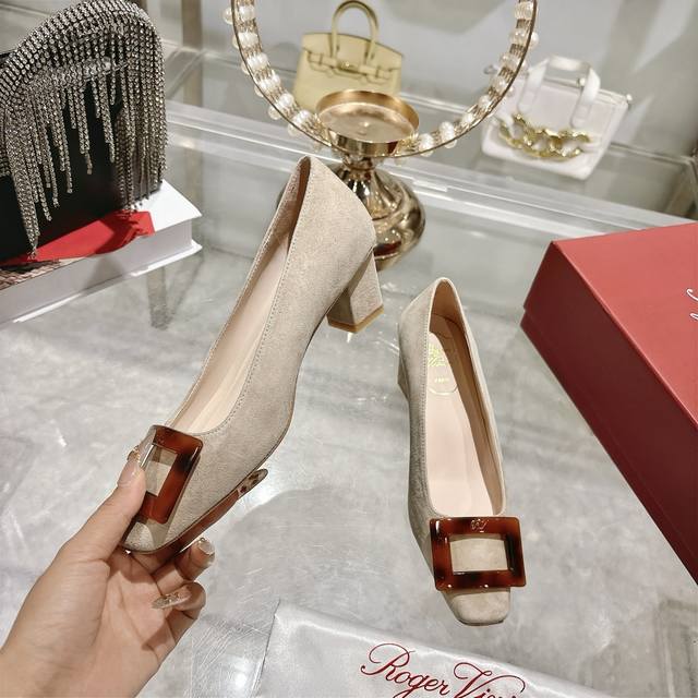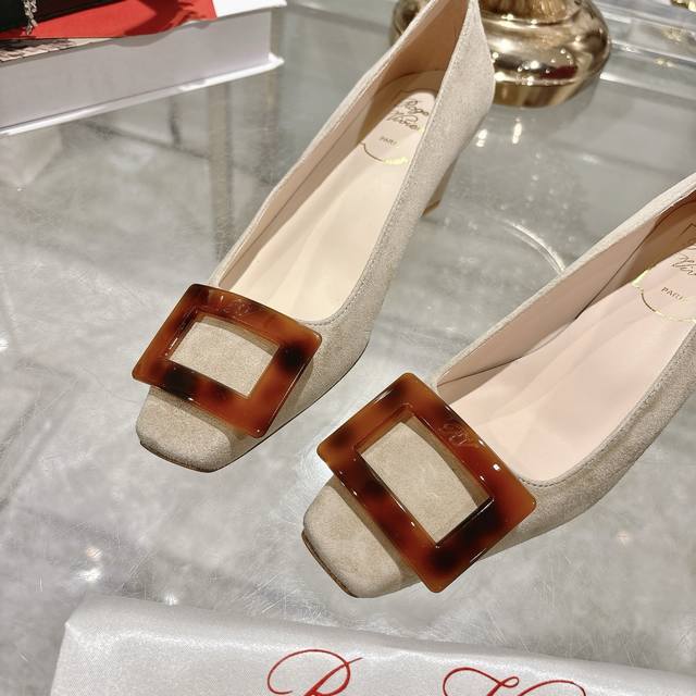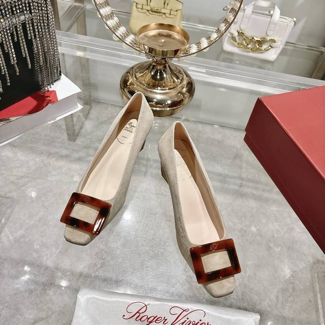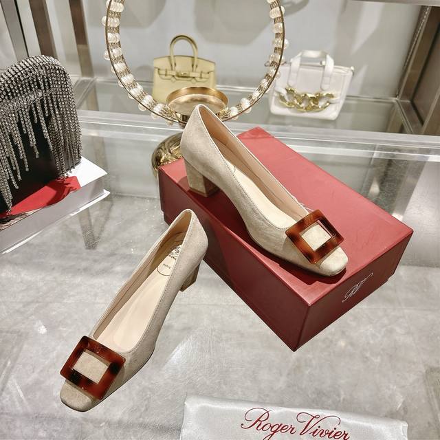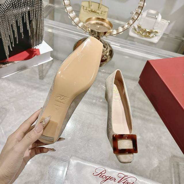 This is a new square-buckle, square-toe high-heeled shoe from RV, a top-tier factory-made version. It features a significant redesign compared to previous styles, redefining the classic square buckle design. The cashmere square buckle adds a unique touch. High-quality through trade channels; good things don't wait to be worn