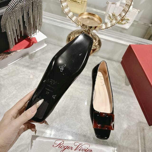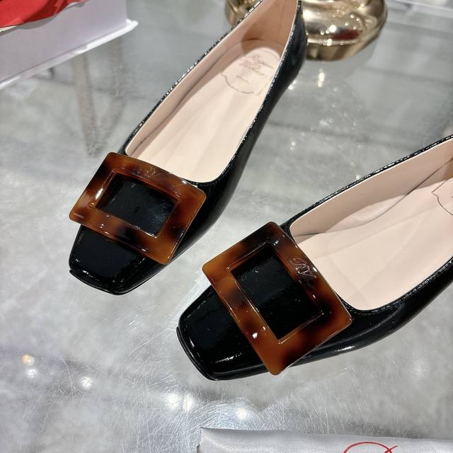 This is a new square-buckle, square-toe high-heeled shoe from RV, a top-tier factory-made version. It features a significant redesign compared to previous styles, redefining the classic square buckle design. The cashmere square buckle adds a unique touch. High-quality through trade channels; good things don't wait to be worn