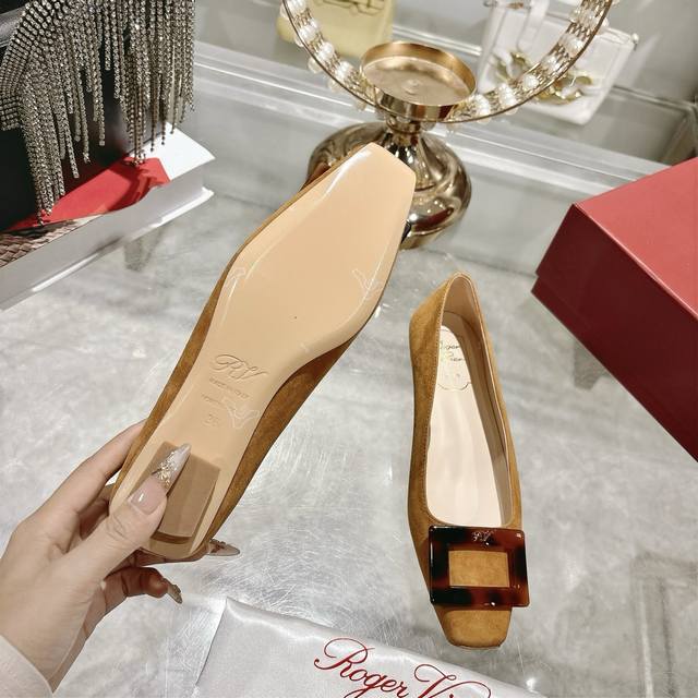 This is a new square-buckle, square-toe high-heeled shoe from RV, a top-tier factory-made version. It features a significant redesign compared to previous styles, redefining the classic square buckle design. The cashmere square buckle adds a unique touch. High-quality through trade channels; good things don't wait to be worn