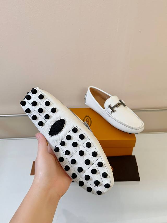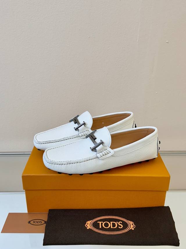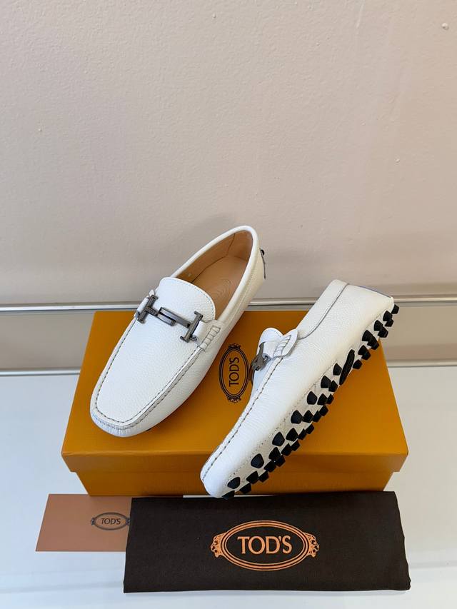 Tod's Men's Loafers, New Arrival, High-Quality Grain Leather, Apricot Lining, Original Packaging. White. Sizes 38-45. DDD