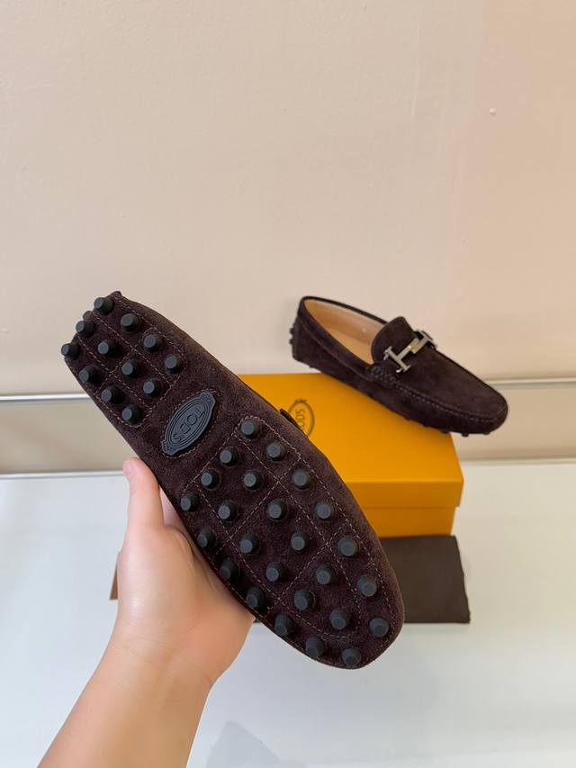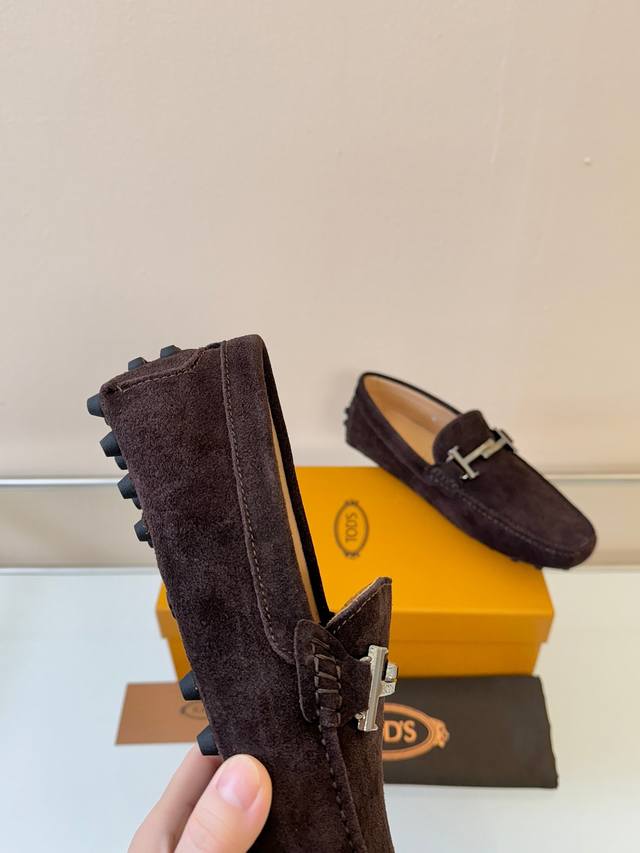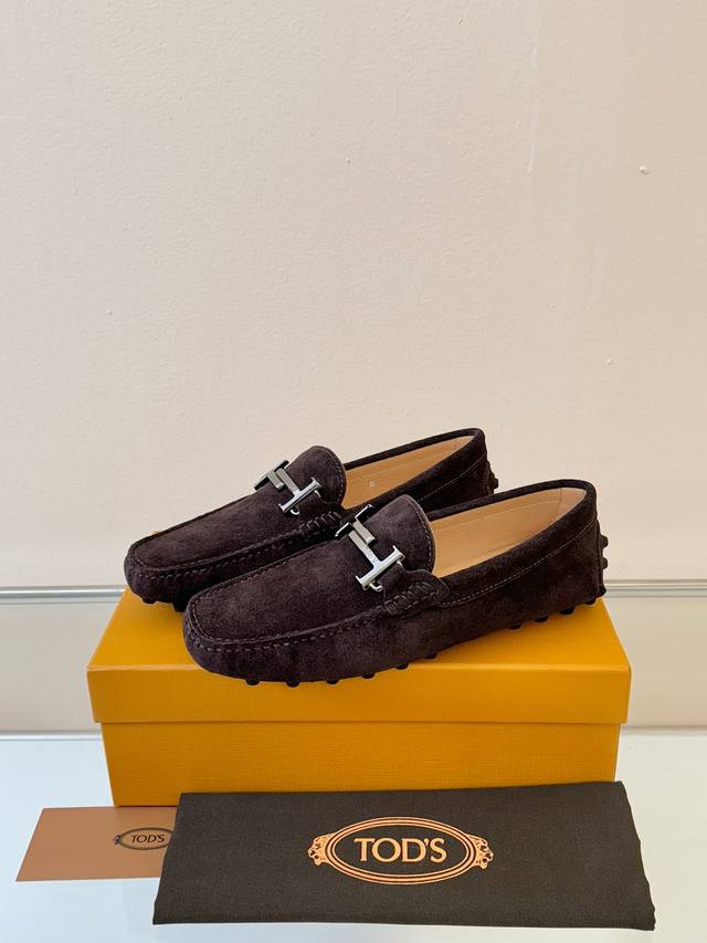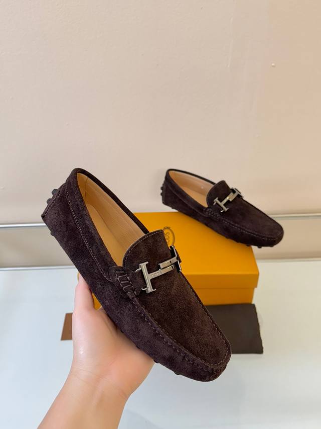 Tod's Men's Loafers, New Arrival, High-Quality Suede Apricot Lining, Original Packaging. Coffee Color, Sizes 38-45. DDD