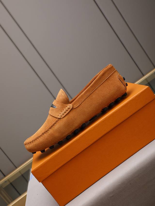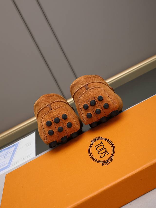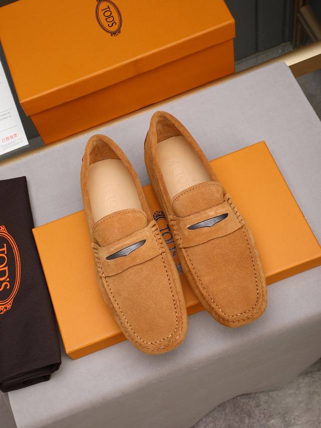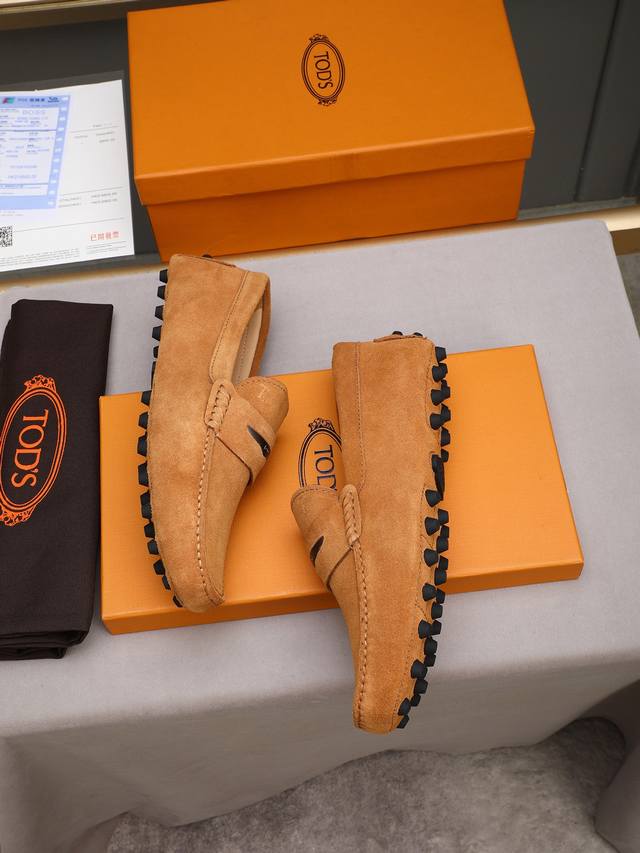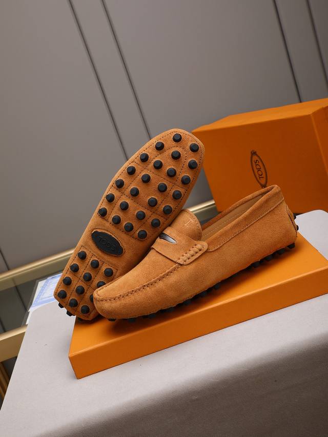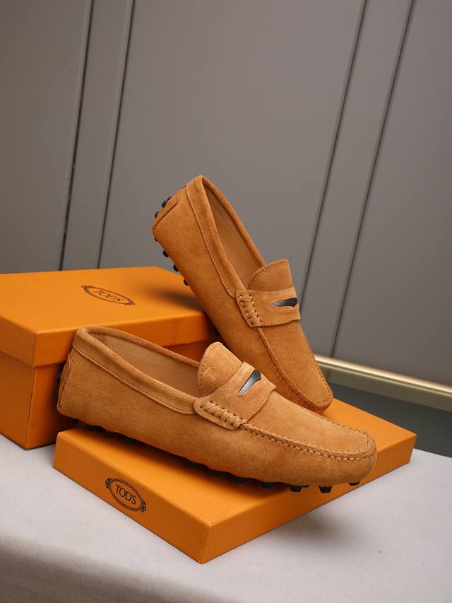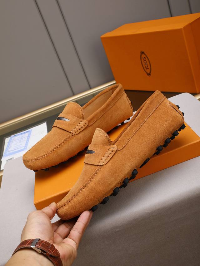 Tod's premium classic men's driving shoes, same style as the official website, high-end quality, top version, original full packaging. Made with imported top-grain calfskin and water-dyed cowhide lining. New accessory buckle. Available in black, dark gray, blue, coffee, iron gray, white, army green, egg yolk yellow, red, light gray, and apricot. Sizes: 38-44, 45, 46. Custom orders and in stock.