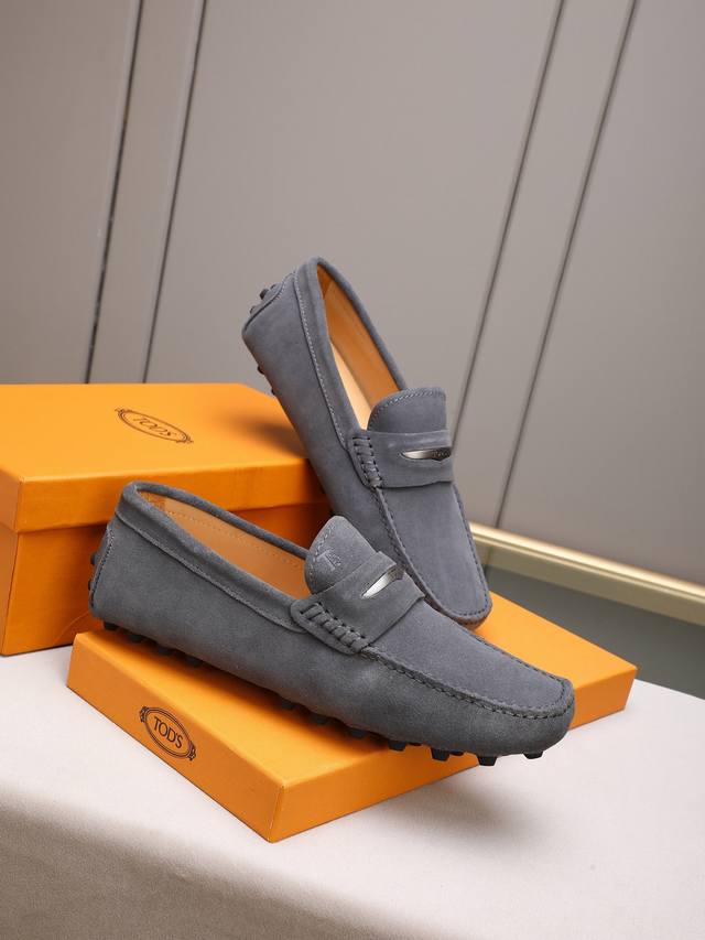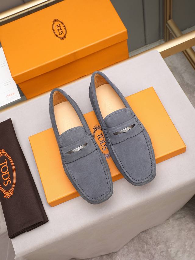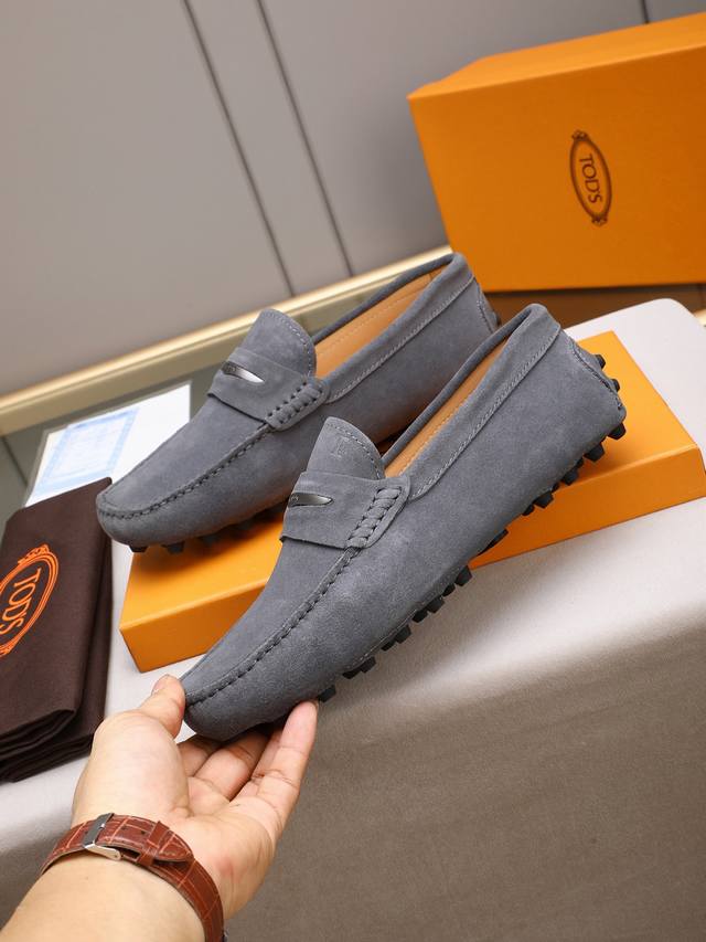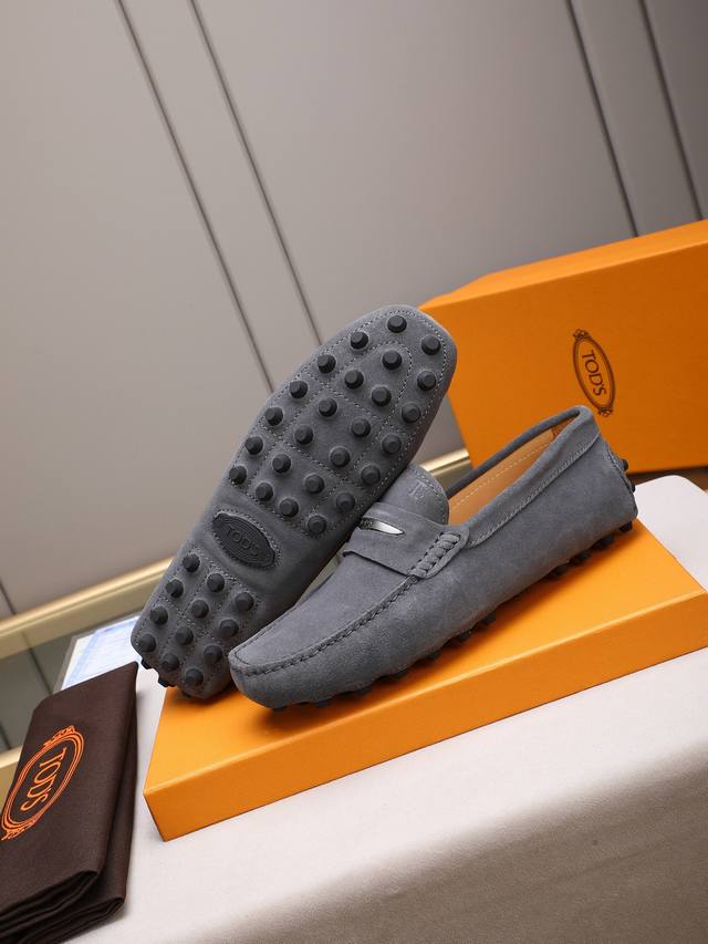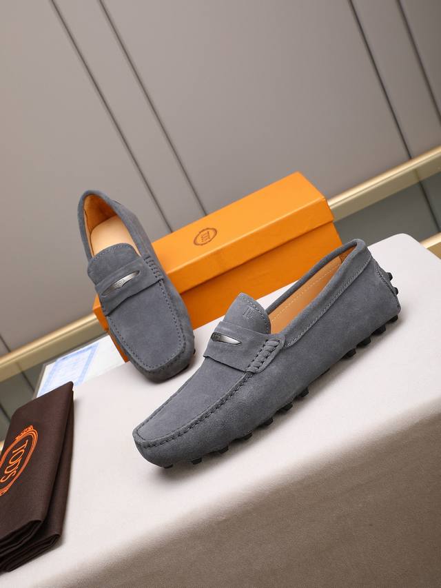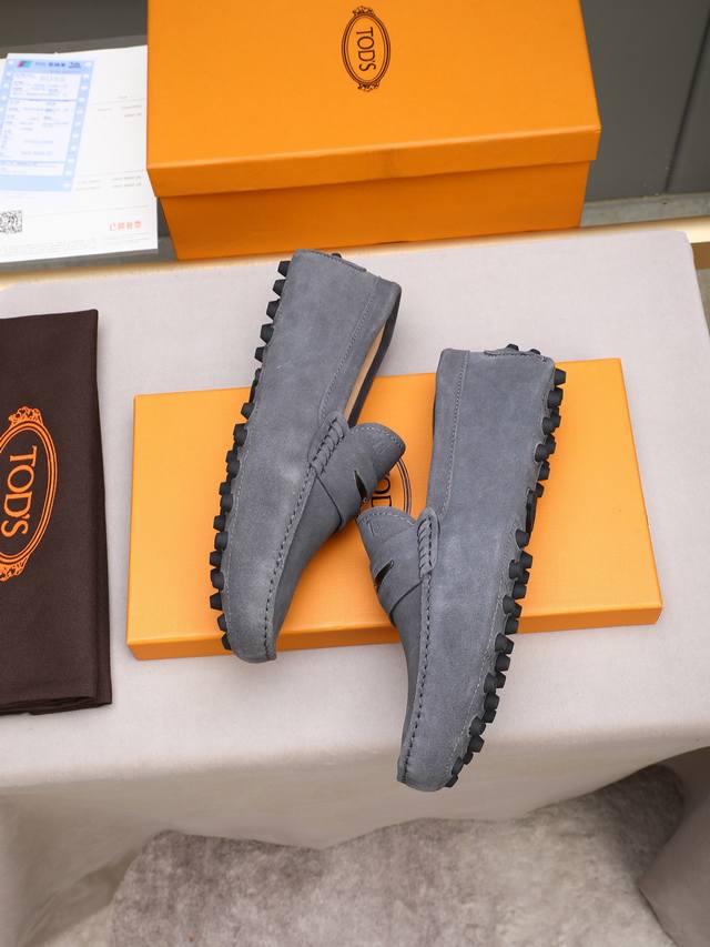 Tod's premium classic men's driving shoes, same style as the official website, high-end quality, top version, original full packaging. Made with imported top-grain calfskin and water-dyed cowhide lining. New accessory buckle. Available in black, dark gray, blue, coffee, iron gray, white, army green, egg yolk yellow, red, light gray, and apricot. Sizes: 38-44, 45, 46. Custom orders and in stock.