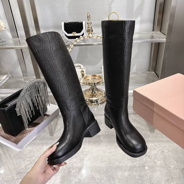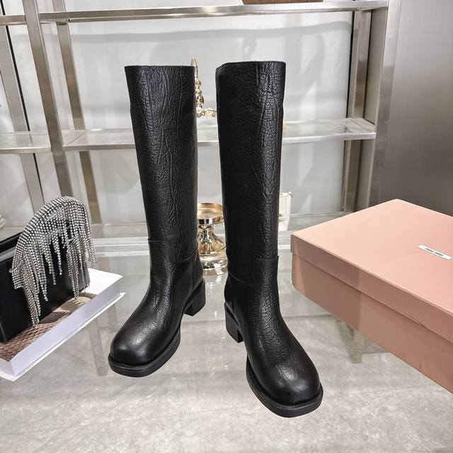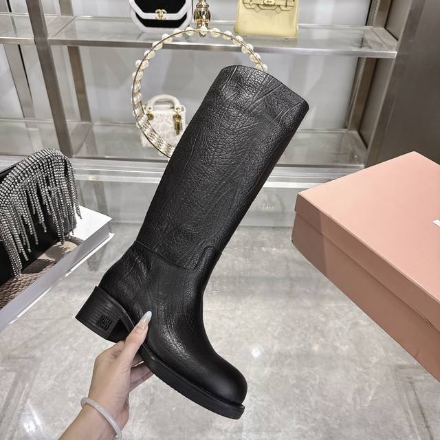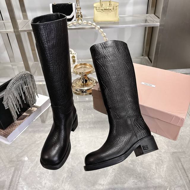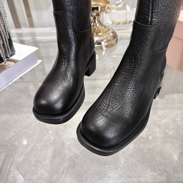 Top-tier factory version. Exclusive online bestseller: Miu Miu Fall/Winter round-toe ankle boots/leather boots. A globally limited edition Miu boot, the most worthwhile boot to buy this year. High-quality handcrafted shoes, vintage-style distressed cowhide leather, full of retro charm. Made entirely of imported elephant cowhide, the leather is high-grade, soft, and delicate. Extremely soft and comfortable, with a fantastic feel. The wide boot shaft provides a relaxed fit regardless of leg size and makes legs appear straighter! A true punk style! Upper: Original imported elephant cowhide. Lining: Original custom sheepskin. Outsole: Original molded non-slip outsole. Size: 35-39. Sizes 40 and 41 are custom-made and non-refundable.