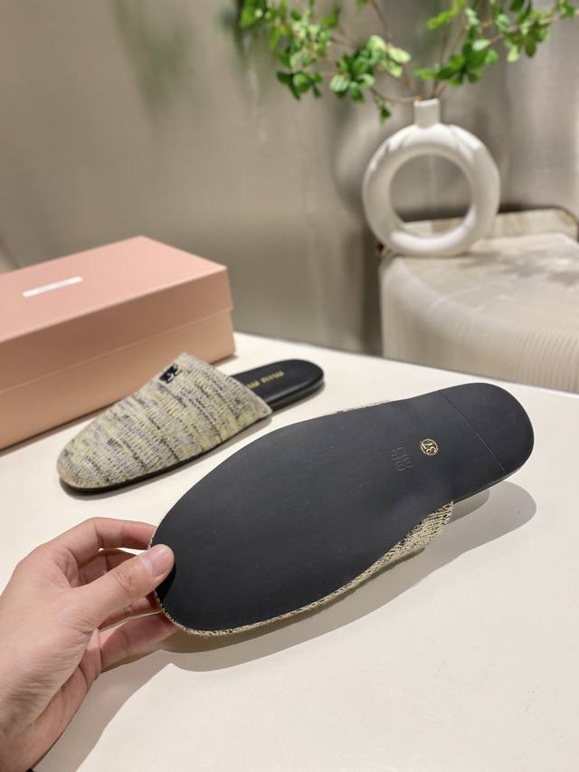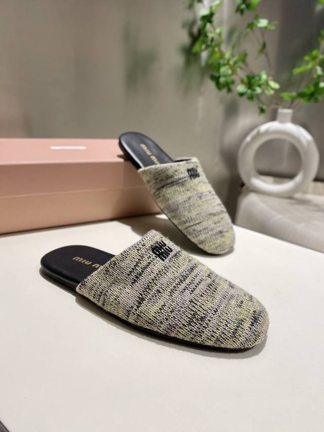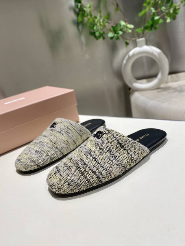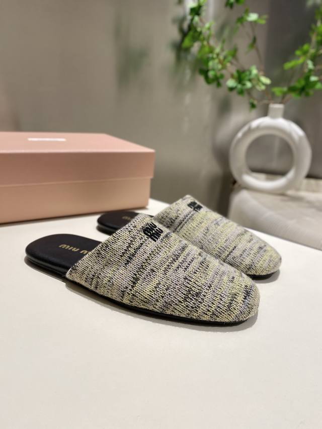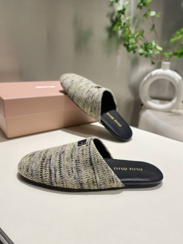 Top-tier factory-made, high-quality Miu Miu 2025 early spring new wool knitted closed-toe slippers. Recommended by numerous bloggers, a must-buy, you won't regret it. Looks great with any outfit. 1:1 replica of the original. Upper: Custom imported knit. Sole: Rubber outsole. Lining: Sheepskin. Sizes: 35-41. Sizes 40 and 41 are custom-made and non-refundable.