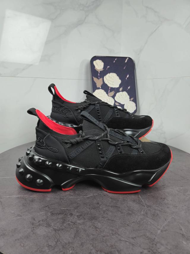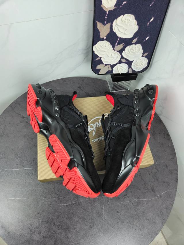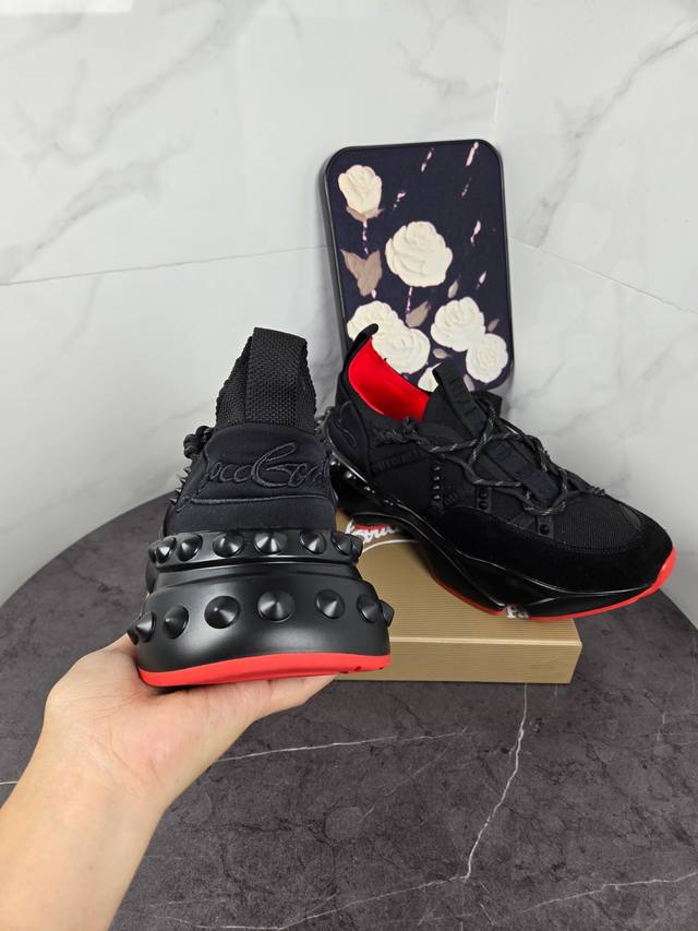 Trendy brand Chri*Stian Loubou*Tin original goods DDD New Cl red sole shoes latest casual couple series, the upper is made of imported Lycra + high-density breathable flyknit, environmentally friendly high-elasticity suction insole will never peel off, the outsole is made of super non-slip and wear-resistant PU + vacuum two-color combination. Size: women's 35-43, men's 38-47. Comes with a tote bag, card and shoehorn. Full packaging. DDD