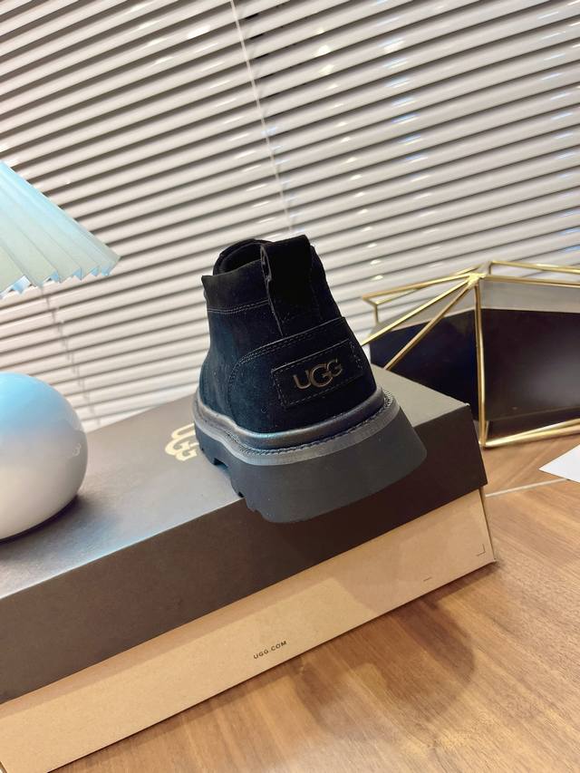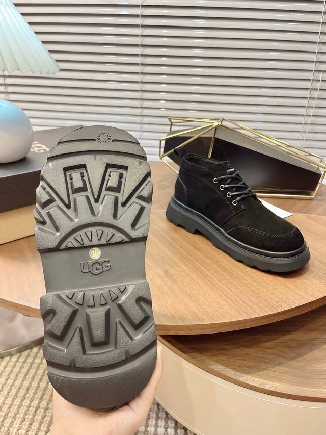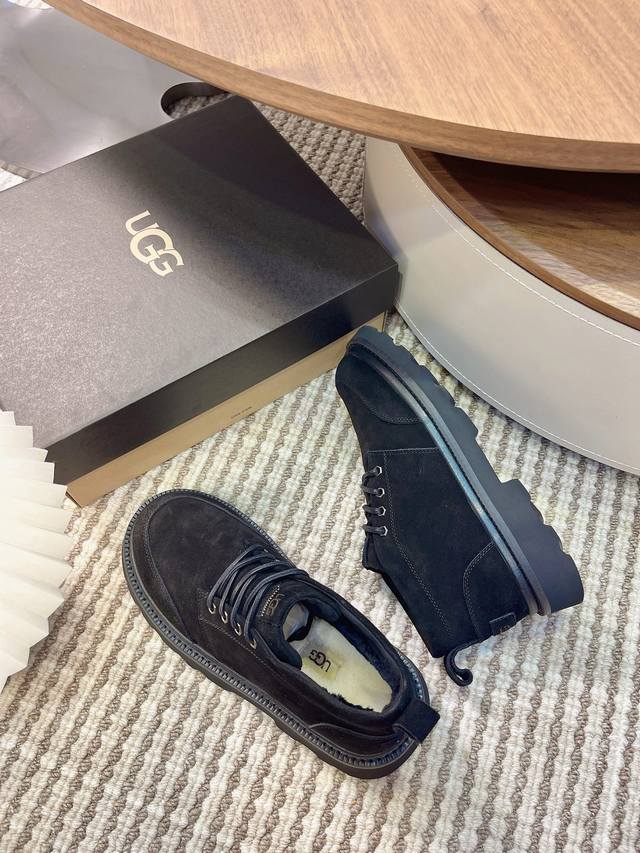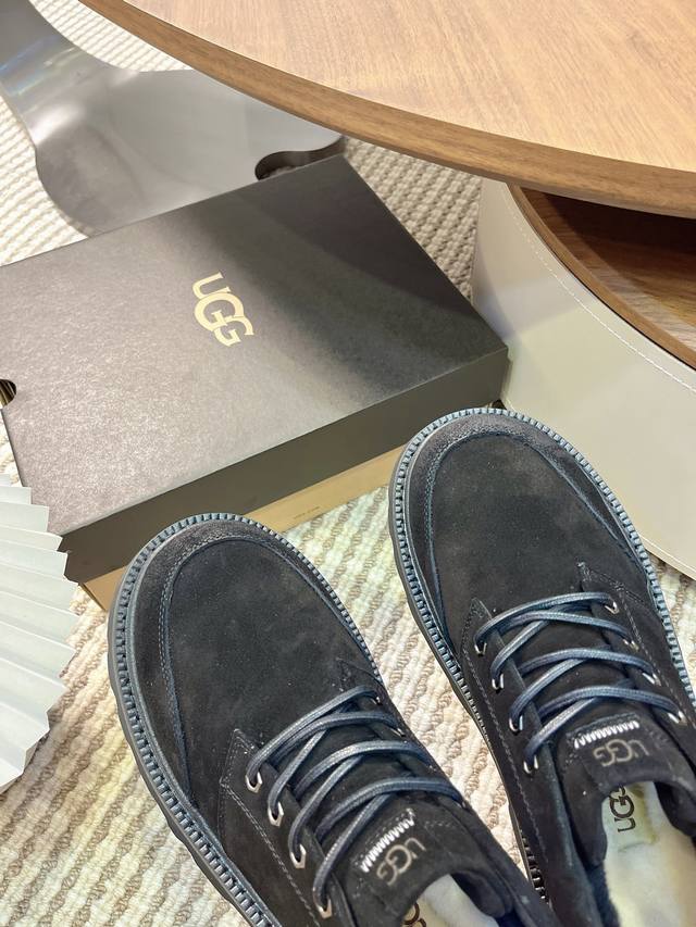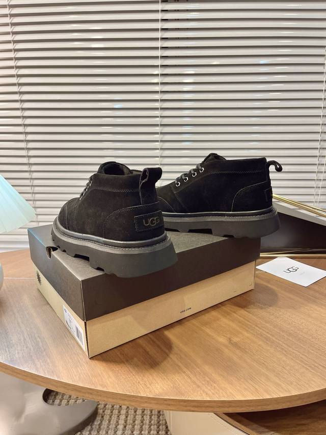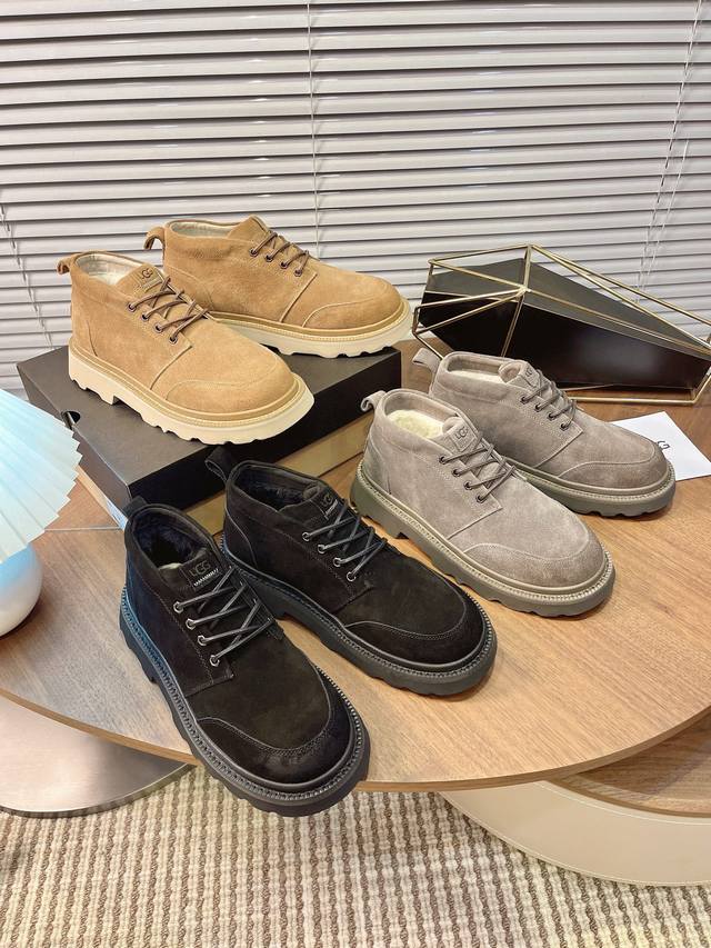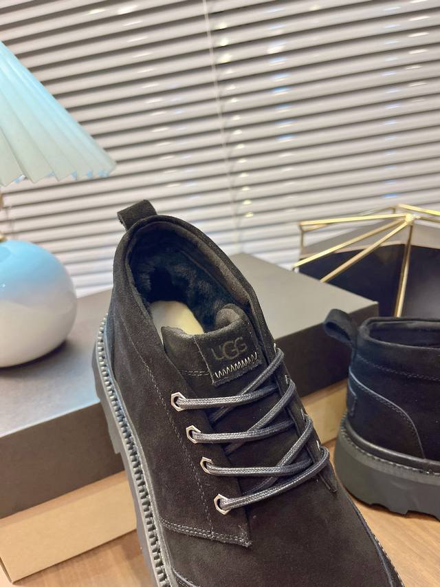 Ugg 2025 New Men's Style Winter Snow Boots with Furry Finish - A 100% Stylish and Fashionable Look That Boosts Your Aura! Lace-up casual boots with a heat-embossed brand logo on the heel. Upper: High-quality cow suede. Lining: Australian imported sheepskin. Outsole: Eva non-slip outsole. Size: 40-44, 45 (custom sizes available).