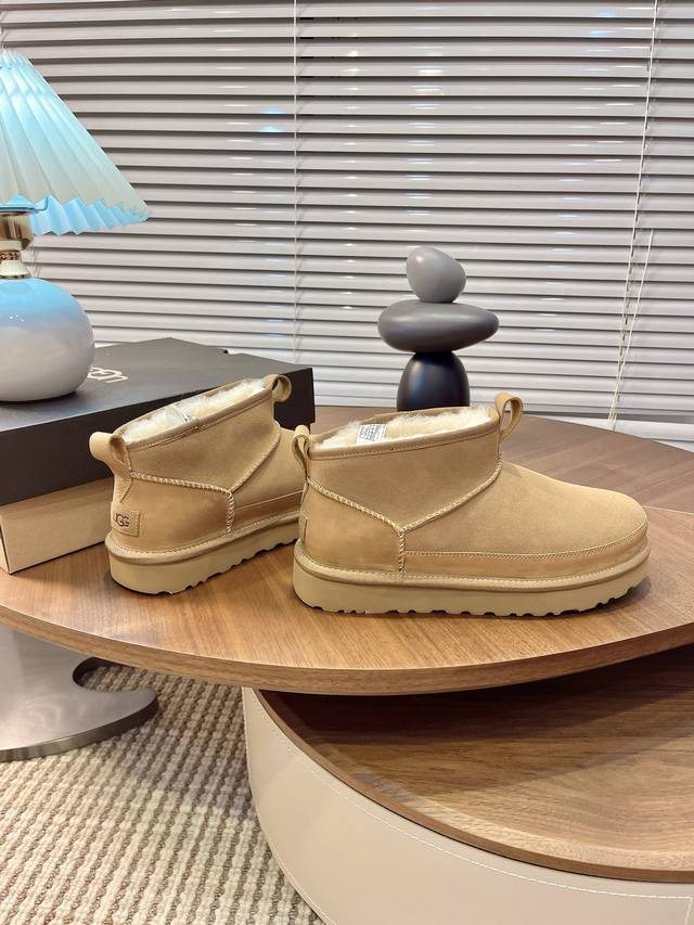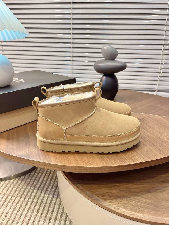 Ugg Autumn/Winter Men's Furry Shoes, Men's Snow Boots, Men's Shoes, Casual Comfortable Flat Round Toe Fashionable Casual Ankle Boots, Slip-on, Made of Cowhide Suede with Eva Outsole, Sizes 39-45.