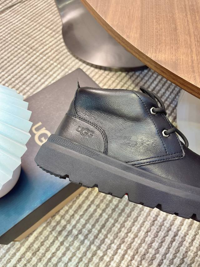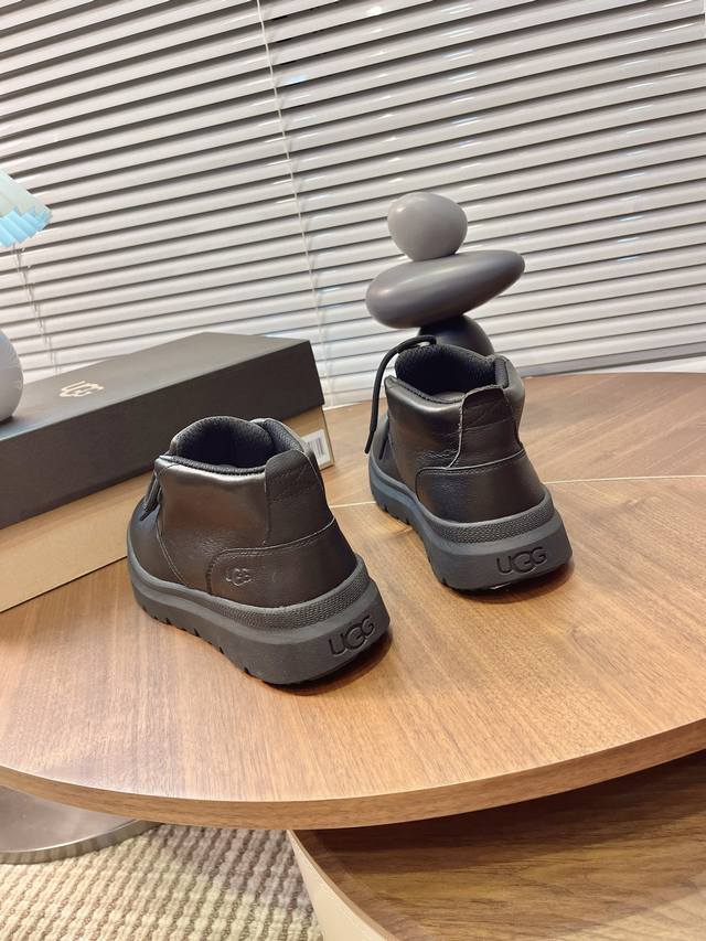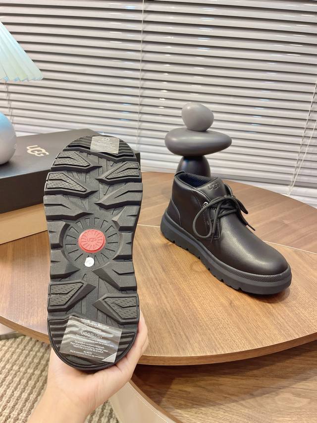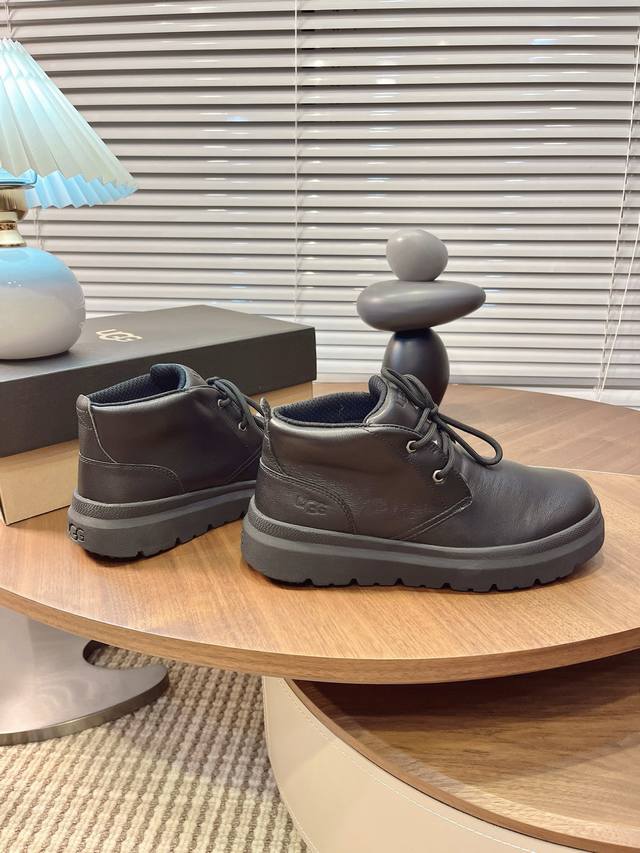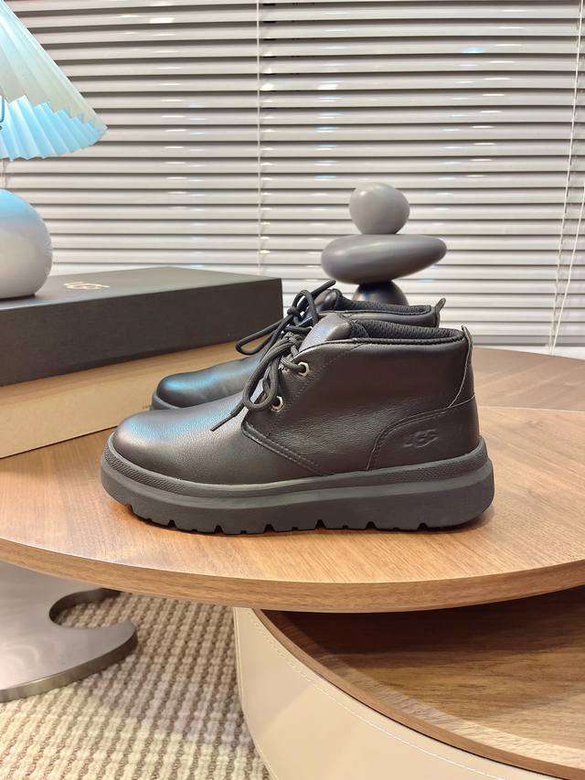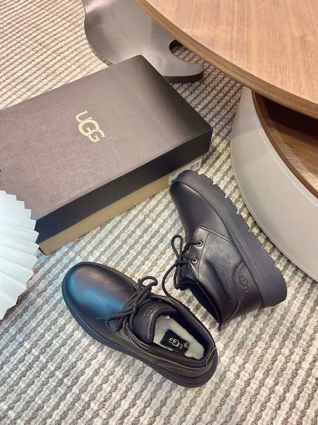 Ugg Autumn/Winter Men's Furry Shoes, Men's Snow Boots, Men's Shoes, Casual Comfortable Flat Lace-up Solid Color Round Toe Fashionable Casual Short Boots 1151773,