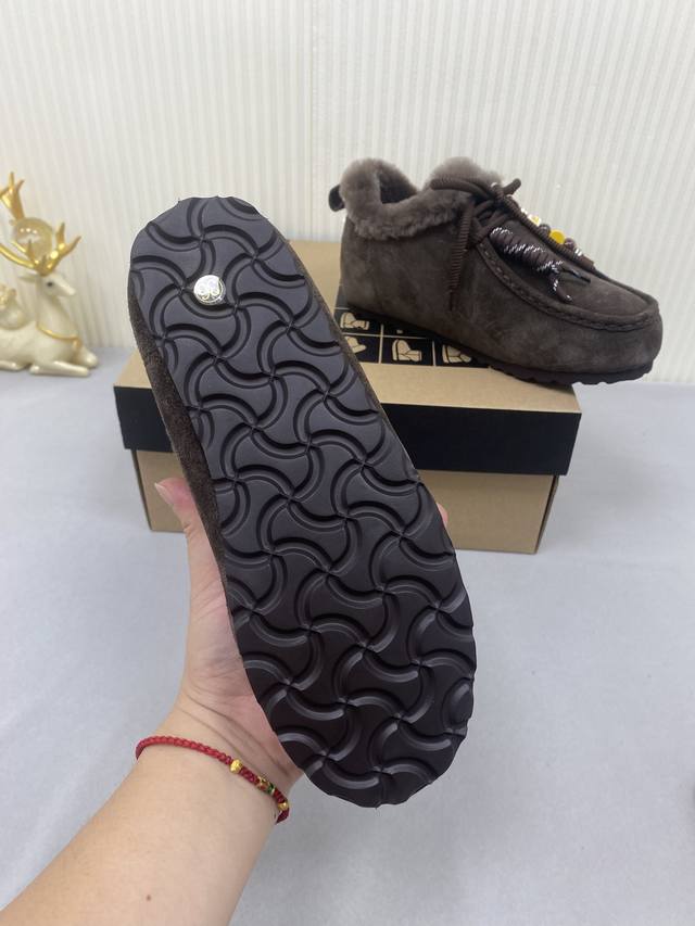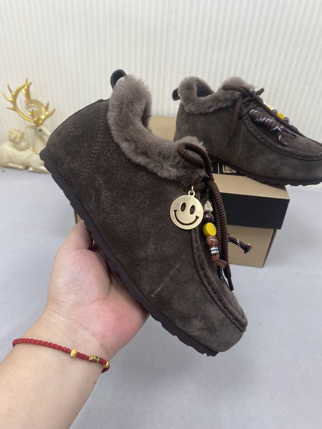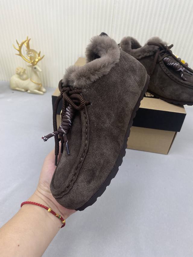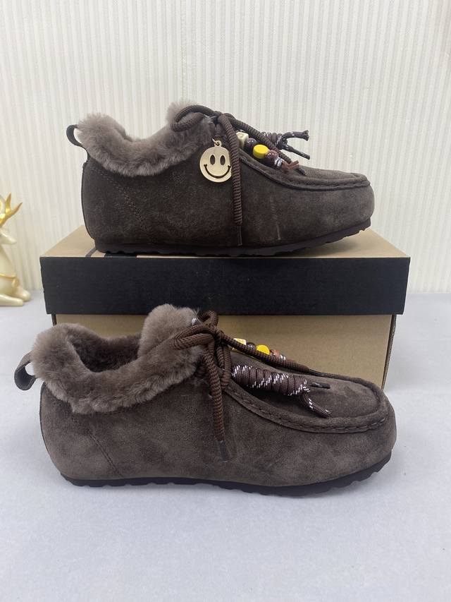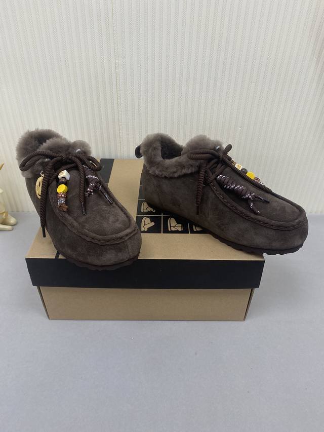 Ugg Unlabeled Autumn/Winter Wool Snow Boots! The upper features a contrasting color design, creating a classic and timeless look. Combined with soft and warm sheepskin, it not only enhances the texture but also adds a finishing touch to any autumn/winter outfit. The lining is made of comfortable genuine wool, making them easy to slip on and off! Extremely stylish! Material: Cow Suede; Lining: Wool; Outsole: Rubber; Sizes: 35-40