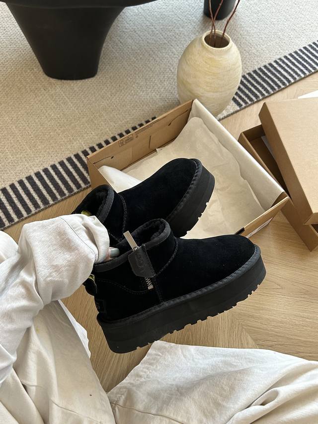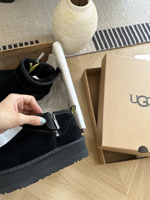 Ugg Women's Size: 35-40 DDD New platform Ugg classic mini ankle boots with zipper! DDD Cowhide and sheepskin zipper adjustable, a must-have slip-on shoe! DDD Colors: Black, maroon. DDD