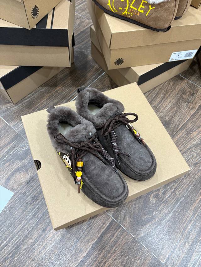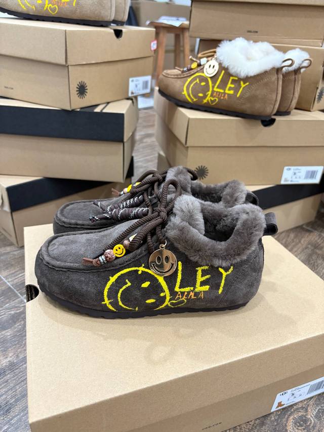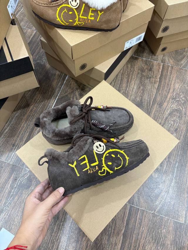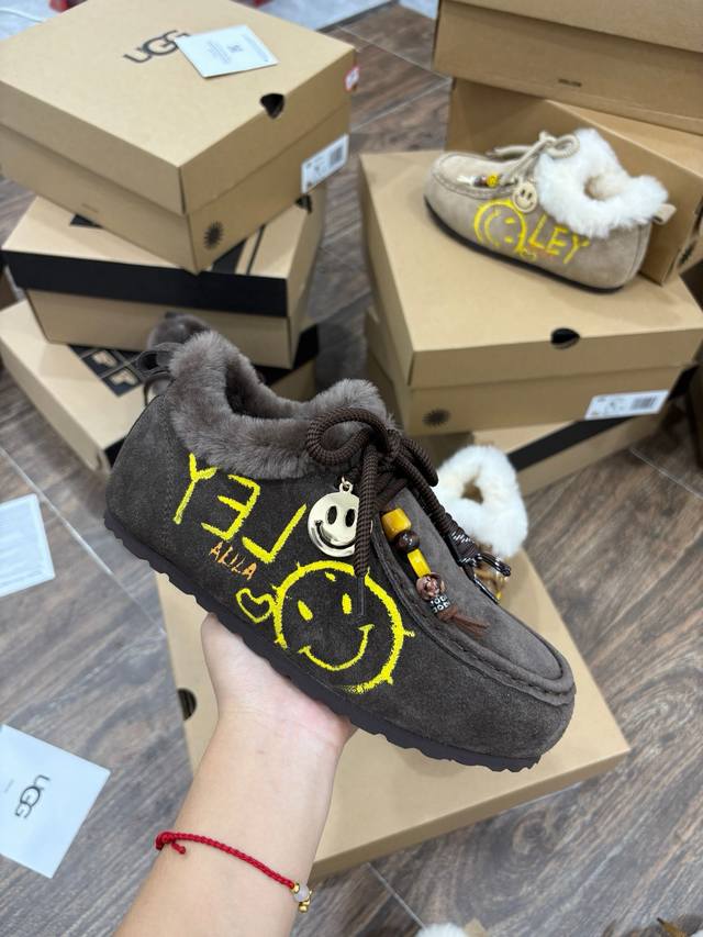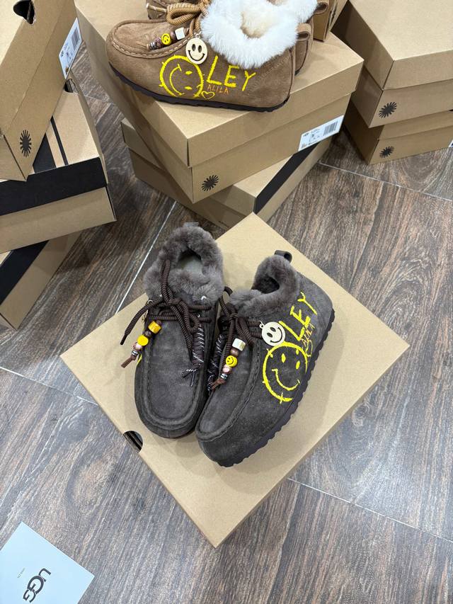 Ugg Women's Size: 35-40 DDD Ugg Graffiti Edition | Wool Kangaroo Shoes Birkenstock Full-Wrap Boots DDD Smiley Face Pendant Pure Wool Version DDD Excellent Fit, Super Versatile DDD Australian Wool Lining with Superb Texture DDD
