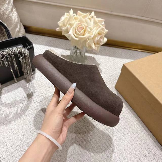 Factory Miu Miu new autumn and winter catwalk solid wood sole wool half-slip, c