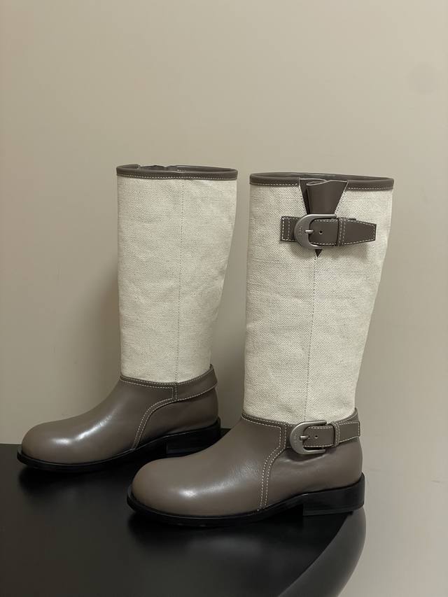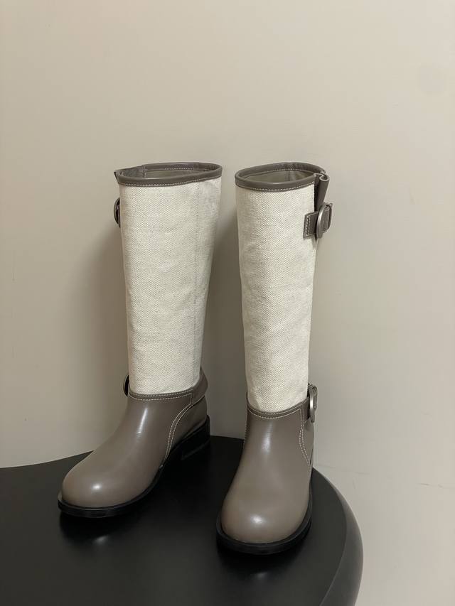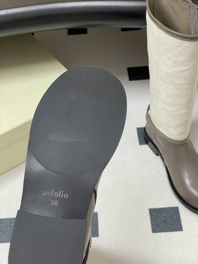 Unfolio 25Aw Autumn/Winter New Style Wrinkled Wide-Cuff Slip-On Straight Boots with Buckle - These boots are a must-have for autumn/winter style! The khaki and dark brown color blocking gives them a retro vibe. The pleated design and metal buckle details add a touch of sophistication. They look effortlessly chic and can be easily paired with a coat or sweatshirt for a high-end look. Different colorways feature uppers made of smooth calfskin, distressed calfskin and suede, or full suede. The boot lining is made of fine, elastic Lycra fabric, smooth and comfortable, providing instant comfort upon first wear. The specially designed thickened rubber sole is easy to care for and suitable for frequent everyday wear. Ddd Upper: Calfskin suede Ddd Insole: Sheepskin Ddd Outsole: Open-mold rubber outsole Ddd Sizes: 35-39 Sizes 40 and 41 are custom-made and non-refundable Ddd