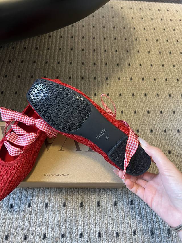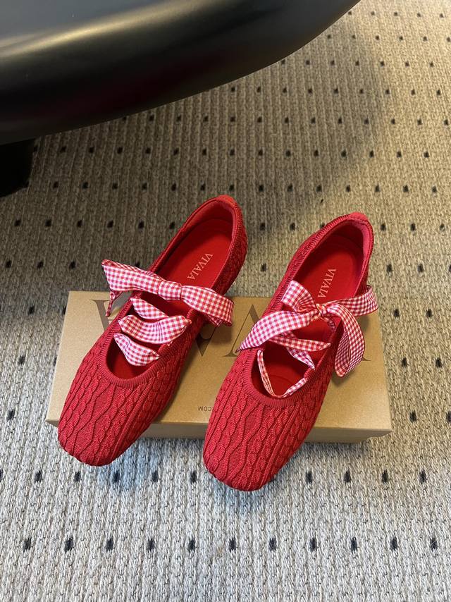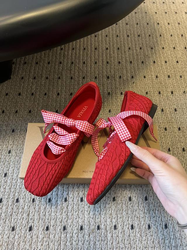 Vivai*25Ss Knitted Mary Jane Flats DDD Made with knitted fabric, the upper features a cable knit texture, making them lightweight and elastic. They feel like wearing socks, while also being breathable. The square toe and lace-up details add a touch of casualness to the sweet design, retaining the elegance of ballet flats while adding a relaxed feel through the knitted texture. DDD The flat sole and elastic material offer high tolerance for different foot shapes, making them comfortable for everyday shopping and commuting, and they are also very lightweight. Basic colors plus bright colors are available; the red version features a detachable plaid bow, allowing you to switch between simple and playful styles. DDD Upper: Non-woven fabric DDD Lining: Sheepskin DDD Outsole: Rubber outsole DDD Height increase: 2cm DDD Size: 35-40, size 40 is custom-made and non-refundable DDD