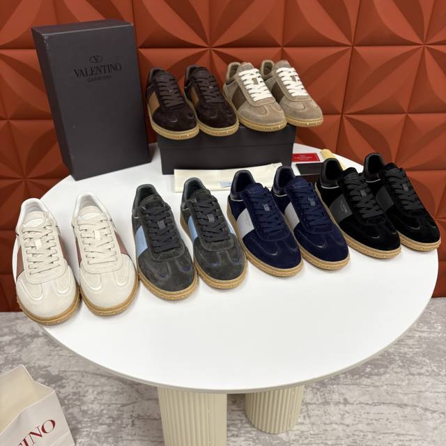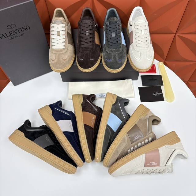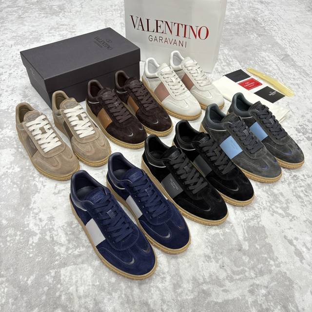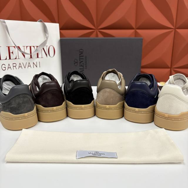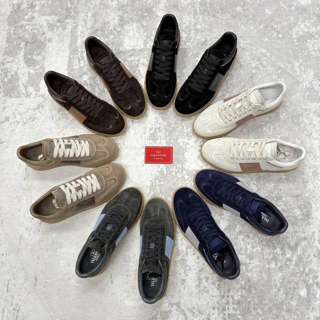 vt's new Valentin* Garavan* low-top sneaker series features a soft, supple, and comfortable upper made of suede and leather. The black calfskin lining and logo-embellished tongue accents complement the contrasting cowhide patches on both sides, lending the shoes a unique texture and vintage charm. Color-blocked panels break up the dullness of the dark colors, adding depth and visual impact. This collection of sneakers boasts a unique design, maintaining Valentin*'s signature elegant style while infusing it with modern, sporty elements. The classic low-top silhouette features smooth, natural lines that conform to the curves of the foot, creating a simple and elegant aesthetic. The patchwork design creates a unique and stylish interplay between different materials and colors. The brand's signature elements are subtle and subtle in the details, showcasing its understated yet luxurious identity. Comes with a full set of packaging for sale. Whether you keep it for yourself or give it as a gift, it can make people feel the unparalleled nobility and luxury. Multiple colors are available!