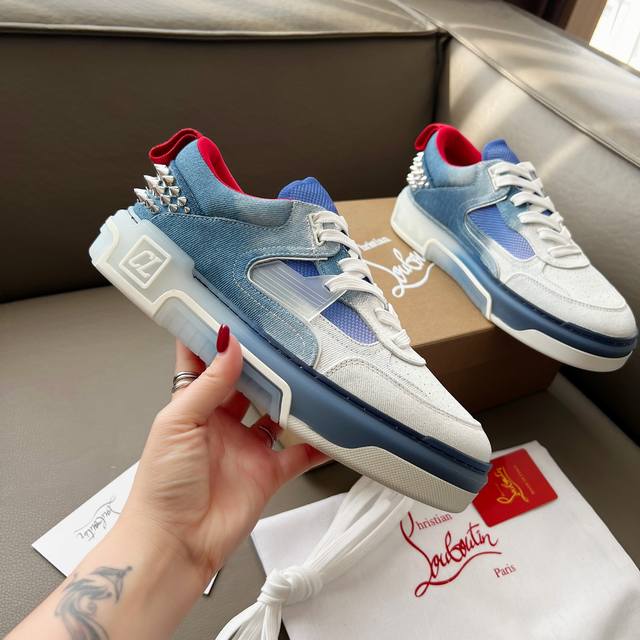 Wang Junkai, Yang Mi, Xu Kai, Zhang Jingyi, Ding Chengxin, Chen Muchi, and Wang Ziyi all wear the same Christian Louboutin Astroloubi thick-soled sneakers. These red-soled shoes are the perfect blend of fashion and sport. Made from imported high-quality washed denim with a computer-printed surface and classic rivet embellishments on the heel, the