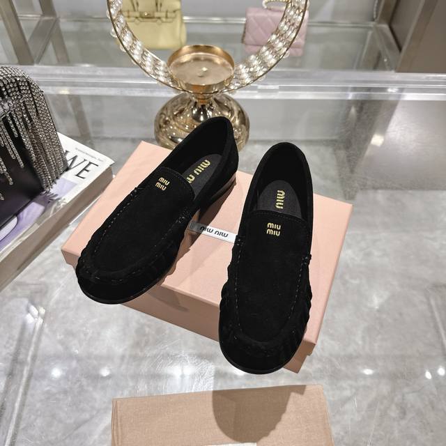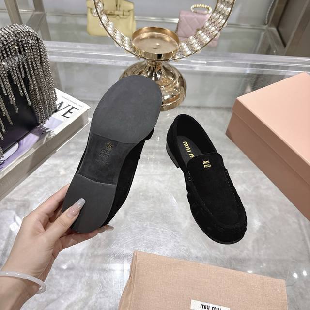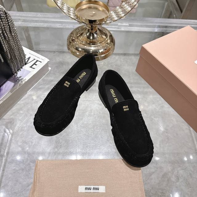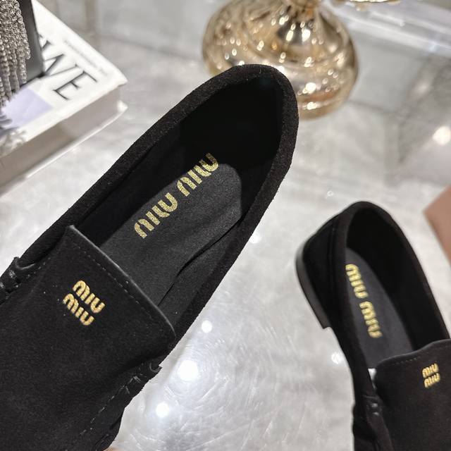 Women's clothing, women's sports shoes, original single 25Ss autumn and winter catwalk new Miu Miu round-toe loafers, simple old money style flat shoes