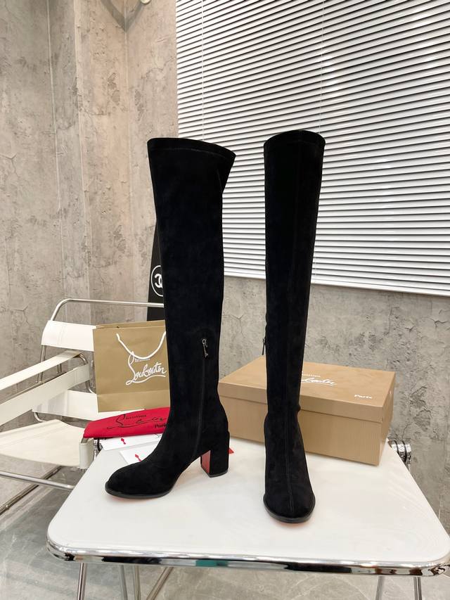 Yuan 1123 (Me): Christian Louboutin Cl's new chunky-heeled stretch ankle boots are a classic and sophisticated design with sleek, slender lines. They feature a 70mm square heel and a 22-inch shaft height. Material: Stretch velvet leather; Lining: Sheepskin; Heel height: 7cm rubber; Color: Black stretch velvet, black stretch leather, khaki stretch suede; Sizes: 34-41 (34, 41 custom sizes); Packaging: Original packaging.