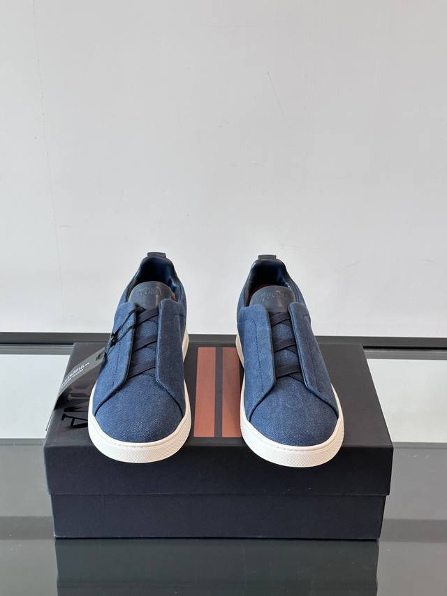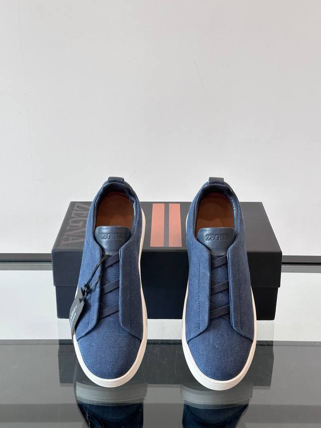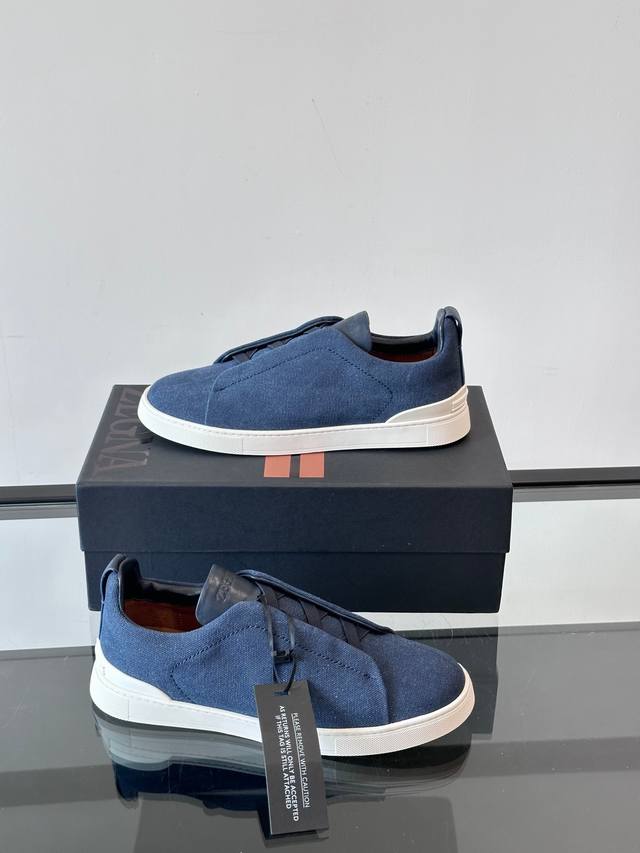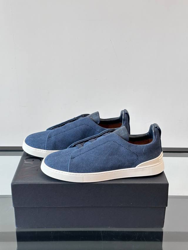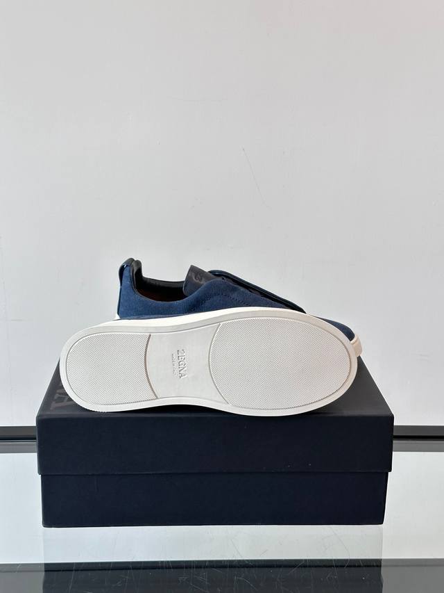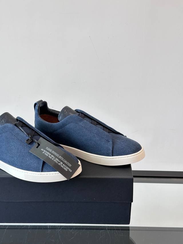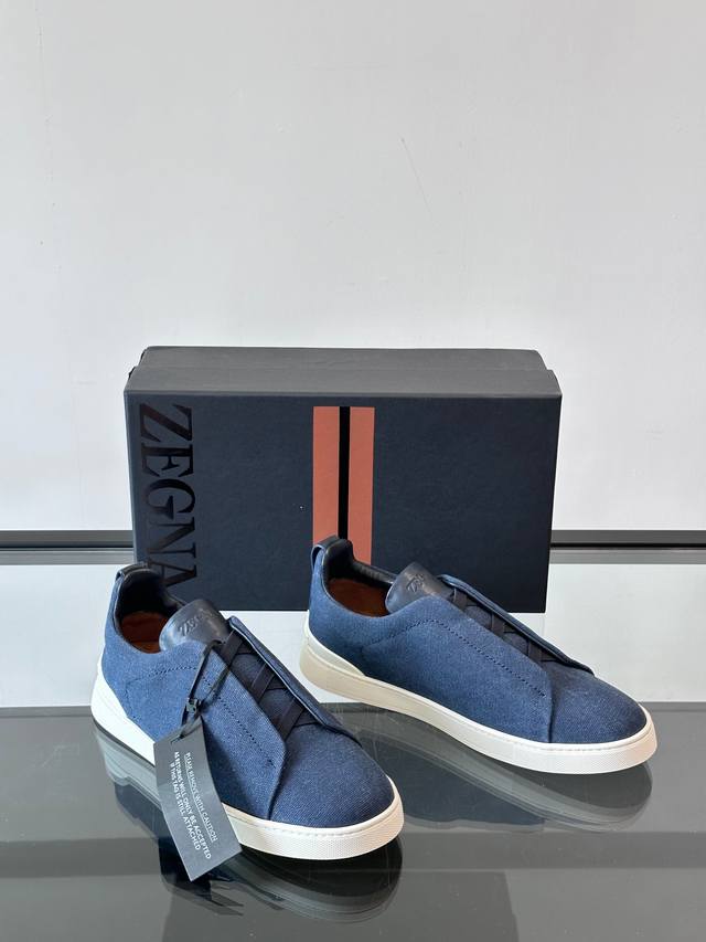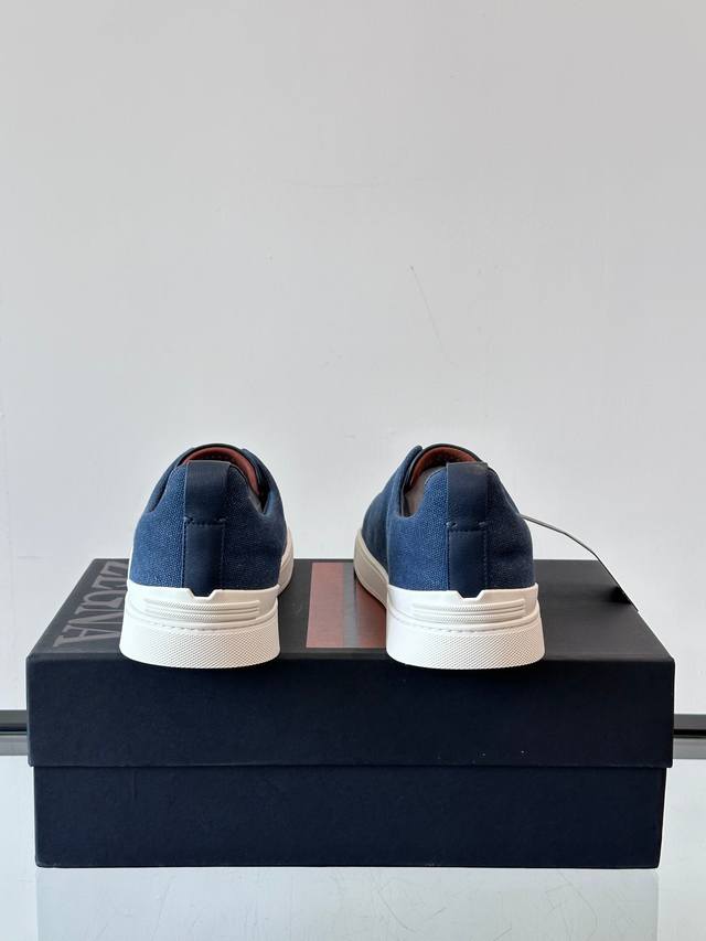 Zegna's new men's low-top leather sneakers, crafted from imported cowhide, feature rich craftsmanship details, including vicu?a leather inlays on the sole and embossed brand logo details. The clean and simple design lines are highly versatile, elegant, and dynamic. The non-slip, wear-resistant, and durable rubber outsole, along with hand-stitched seams between the sole and upper, ensures durability and prevents the sole from falling off. A very good trendy casual sneaker item for men! Size: 38-45