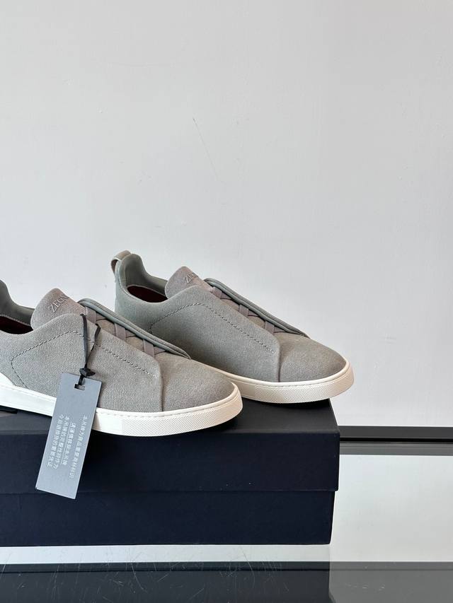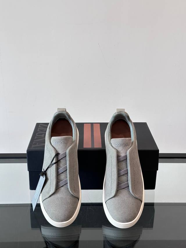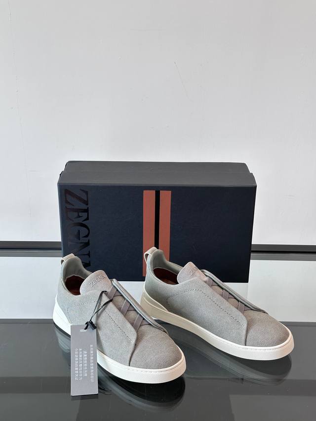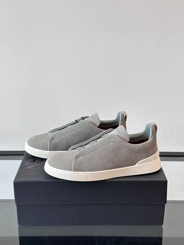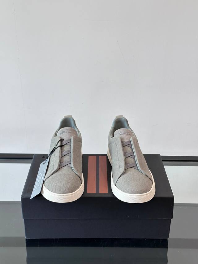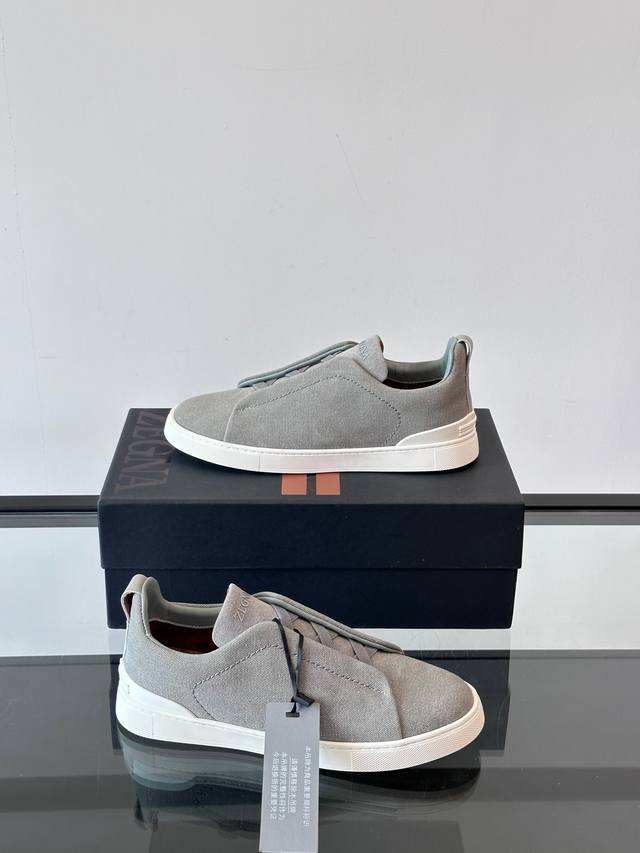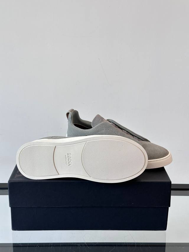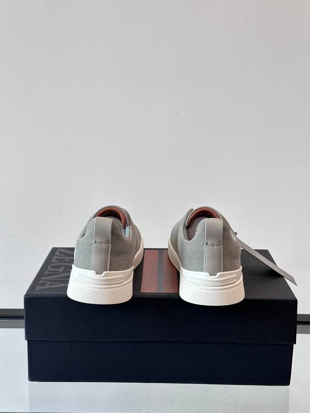 Zegna's new men's low-top leather sneakers, crafted from imported cowhide, feature rich craftsmanship details, including vicu?a leather inlays on the sole and embossed brand logo details. The clean and simple design lines are highly versatile, elegant, and dynamic. The non-slip, wear-resistant, and durable rubber outsole, along with hand-stitched seams between the sole and upper, ensures durability and prevents the sole from falling off. A very good trendy casual sneaker item for men! Size: 38-45